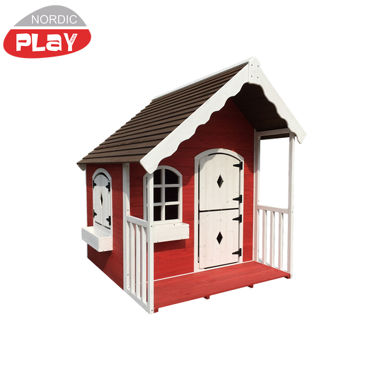 Leikkimökki verannalla, punainen/valkoinen NORDIC PLAY