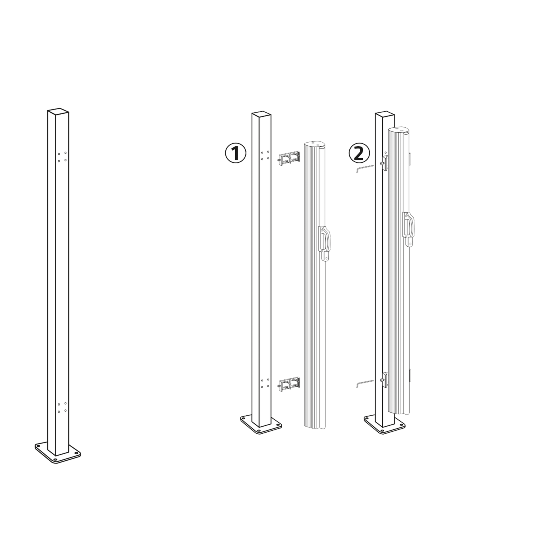 Jos haluat sivumarkiisin, tuotenumero 211-900 vapaasti asennettavaksi, tulee tämä aloitustolppa lisätä ostokseesi.