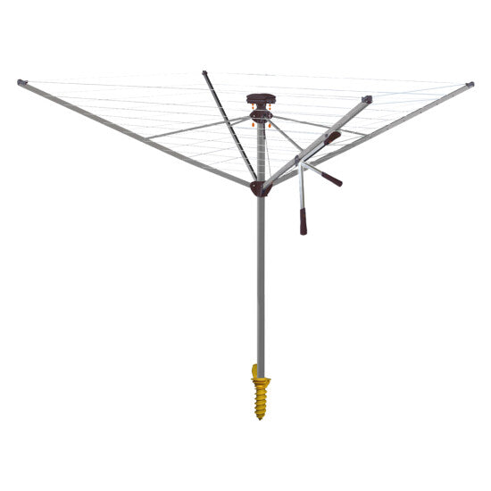 Pyörivä JUWEL -pyykinkuivausteline älykkäällä avauskahvalla. Nova Plus 500 "Easy" -kuivaustelinen avautuu ja kiristyy käyttökuntoon nopeasti ja helposti. Älykkään EasyLift -avauskahvan ansiosta pääset ripustamaan pyykkiä kuivumaan nopeasti, vaikka teline ensin avattava. Sisäänrakennettu, integroitu suojus pitää narut sekä varret lialta suojassa ja varmistaa tällä tavalla puhtaan pyykin pysymisen puhtaana.