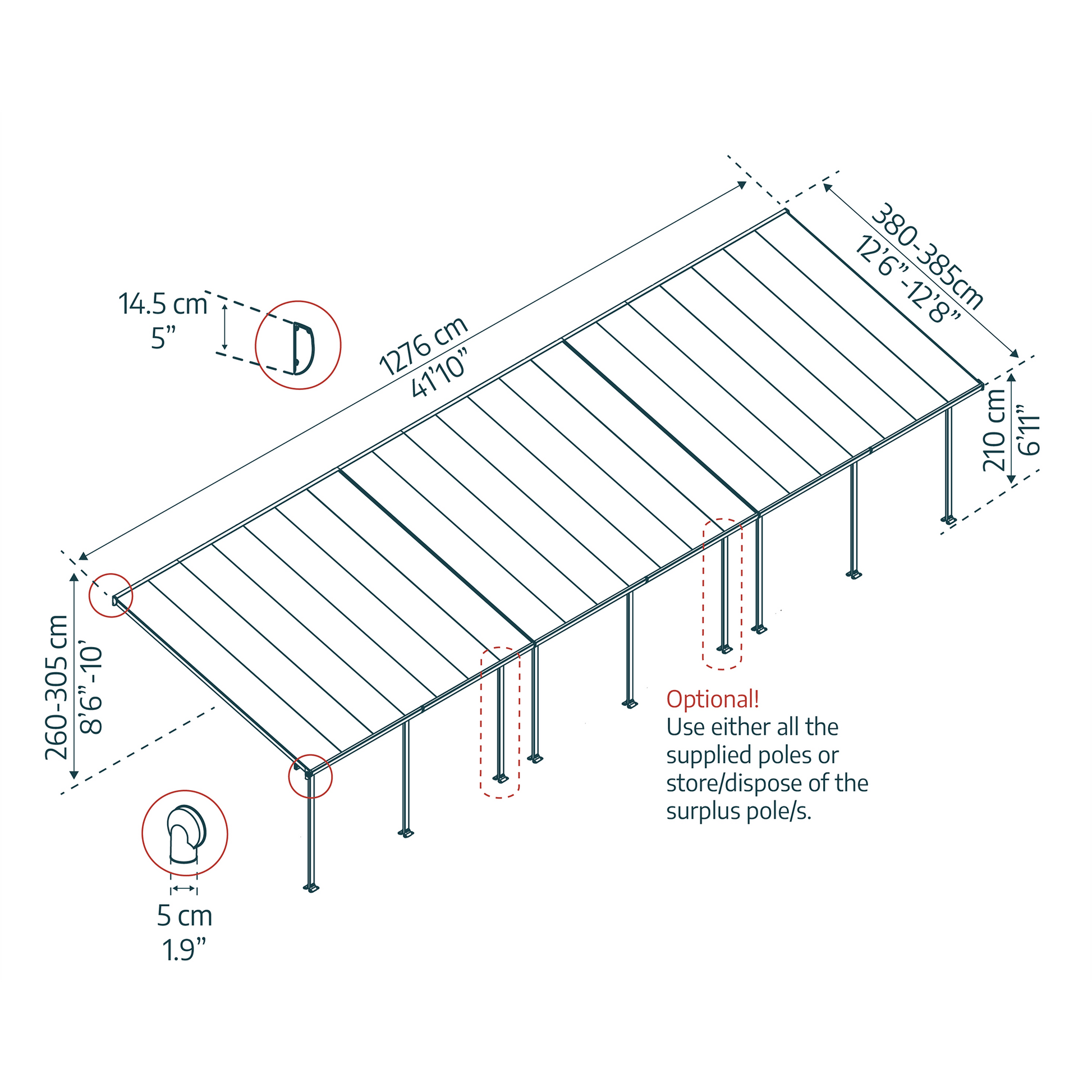 Terassikatos Feria 4 x 12,76 m, valkoinen Palram - Canopia
