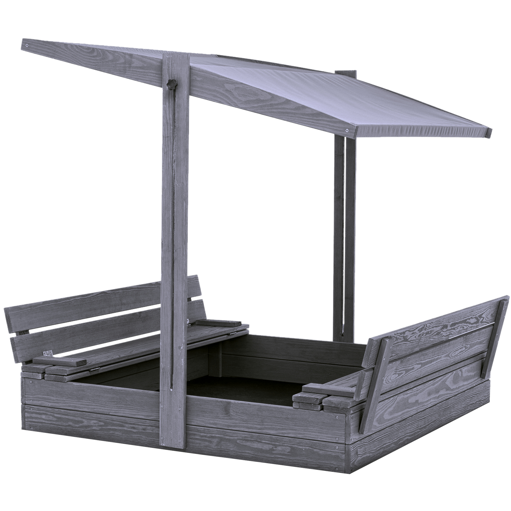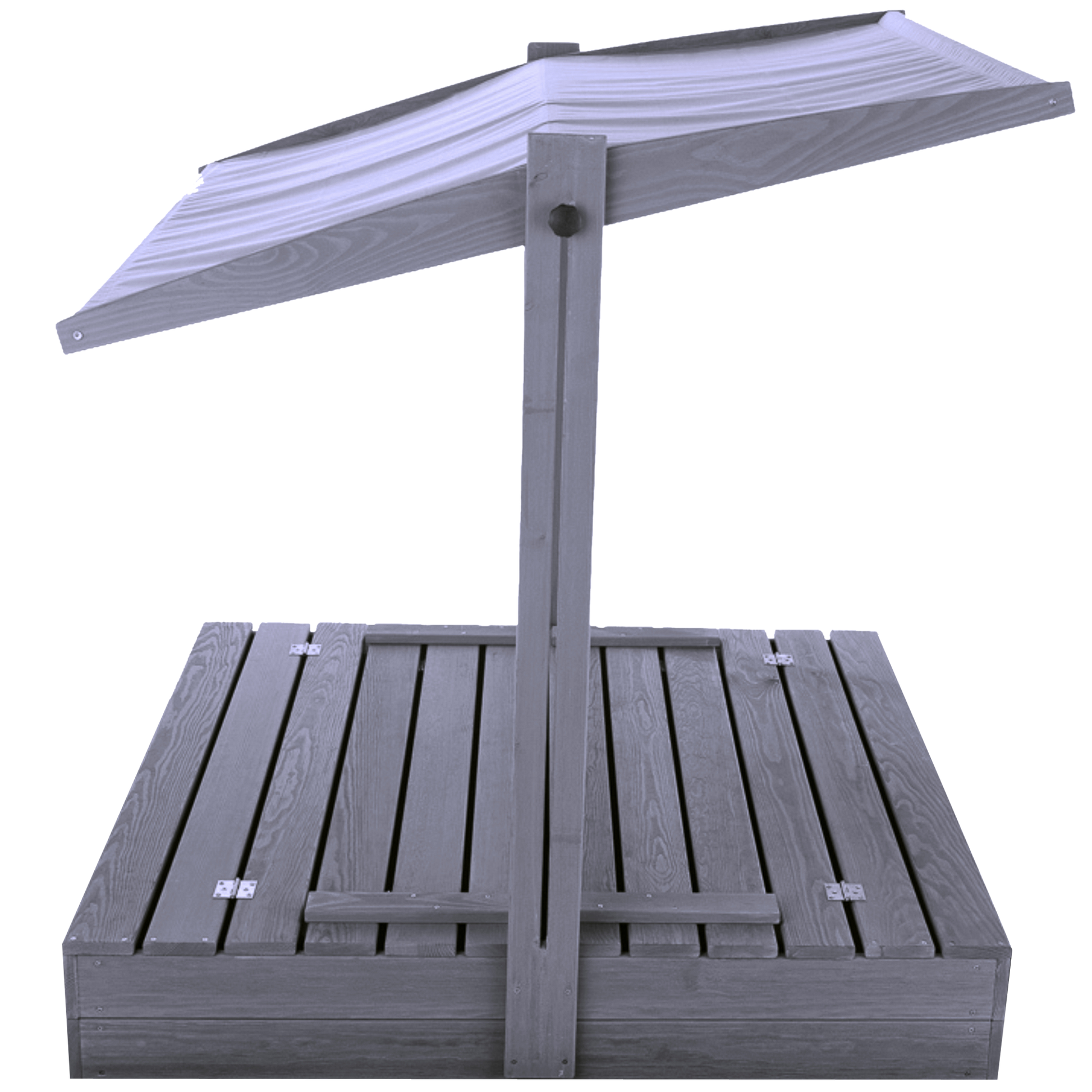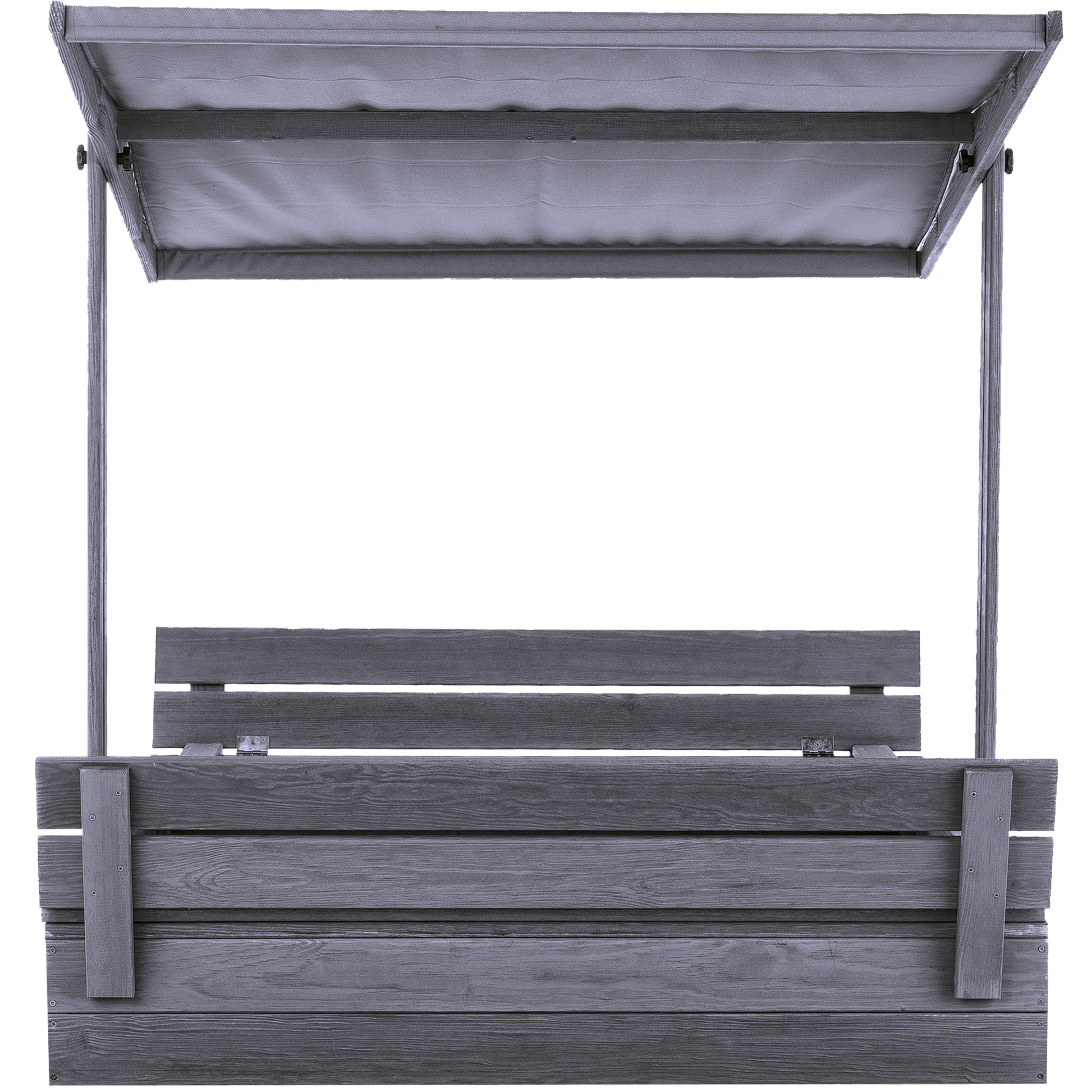 Hiekkalaatikko 120 x 120 cm, penkeiksi taittuva kansi, säädettävä katto, pohjamaalattu harmaa NORDIC PLAY