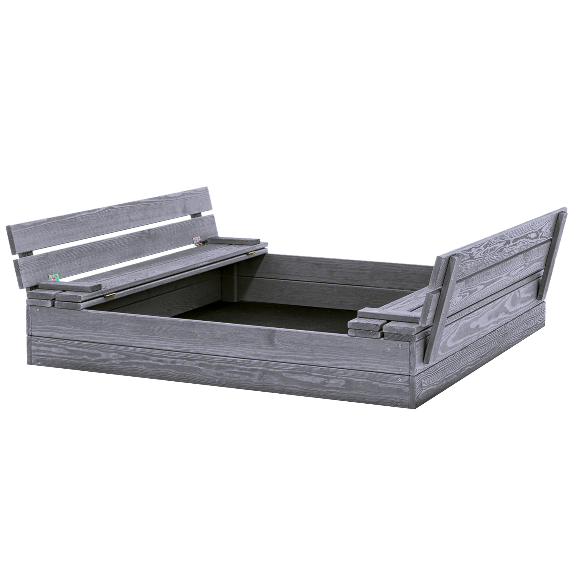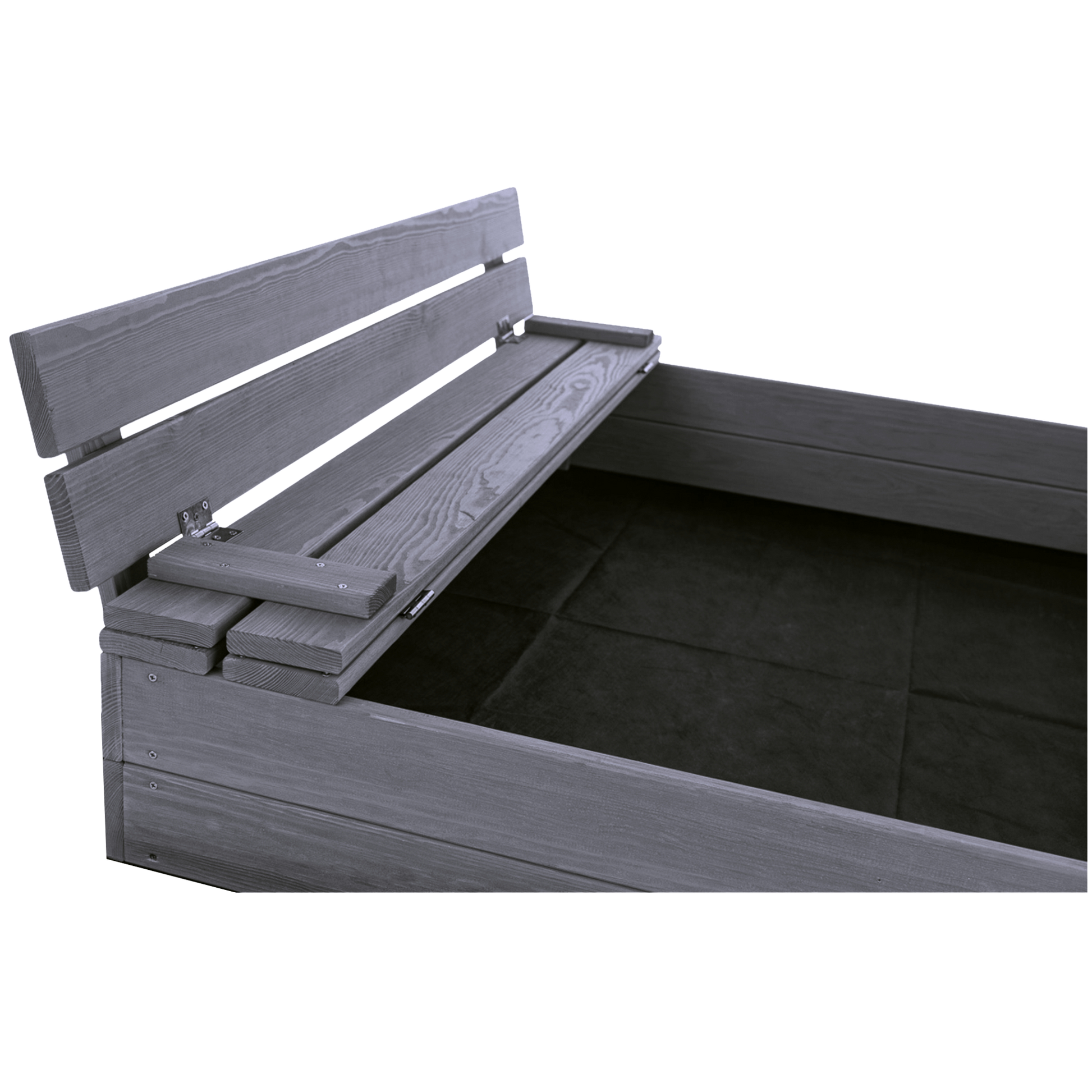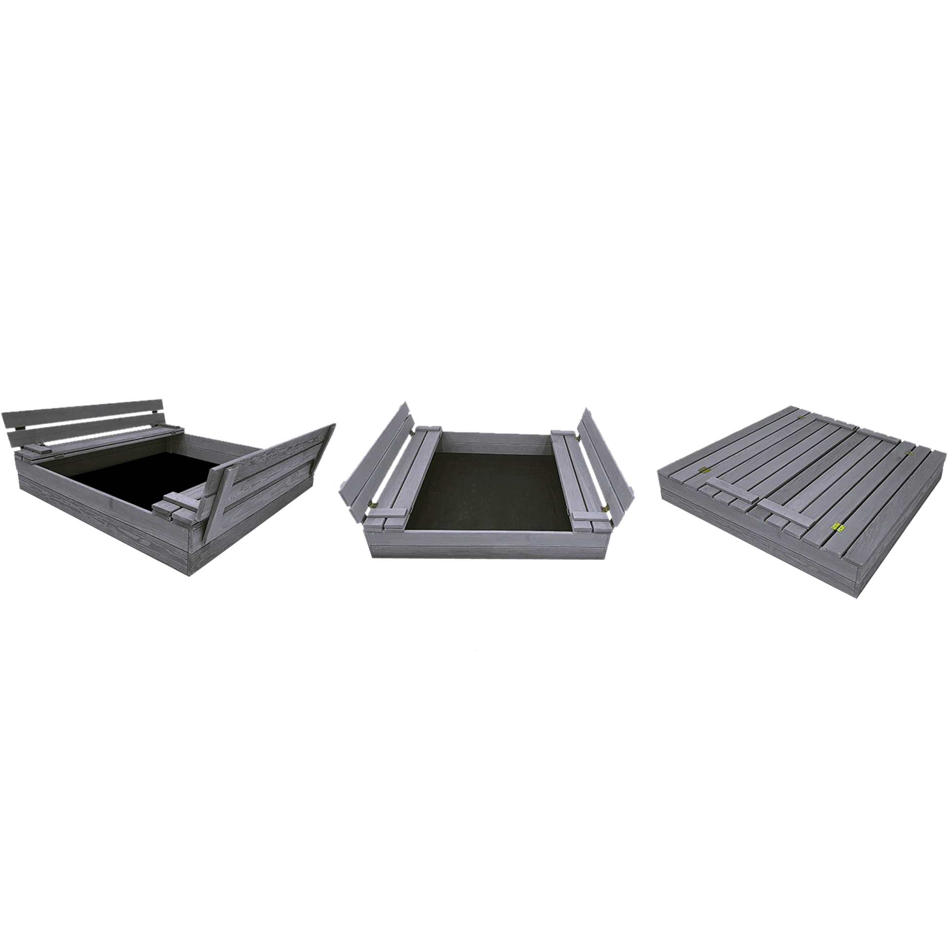 Hiekkalaatikko 120 x 120 cm, penkeiksi taittuva kansi, pohjamaalattu harmaa NORDIC PLAY