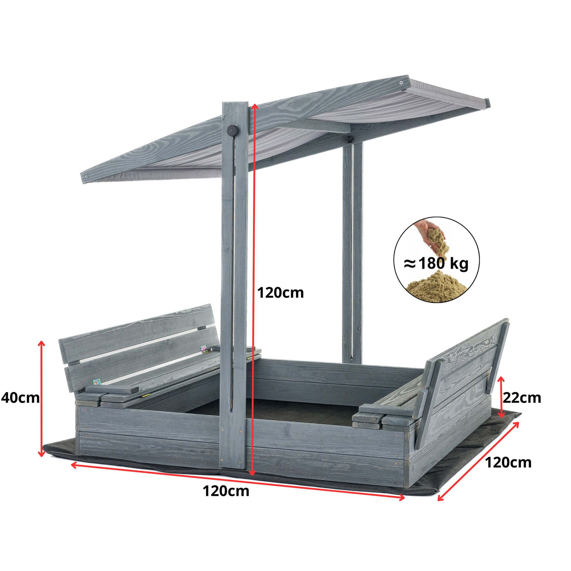 Hyödyllinen ja toimiva lisävaruste hiekkalaatikkoon varmistaa lapsille mahdollisuuden leikkiä tuntikausia säästä riippumatta.