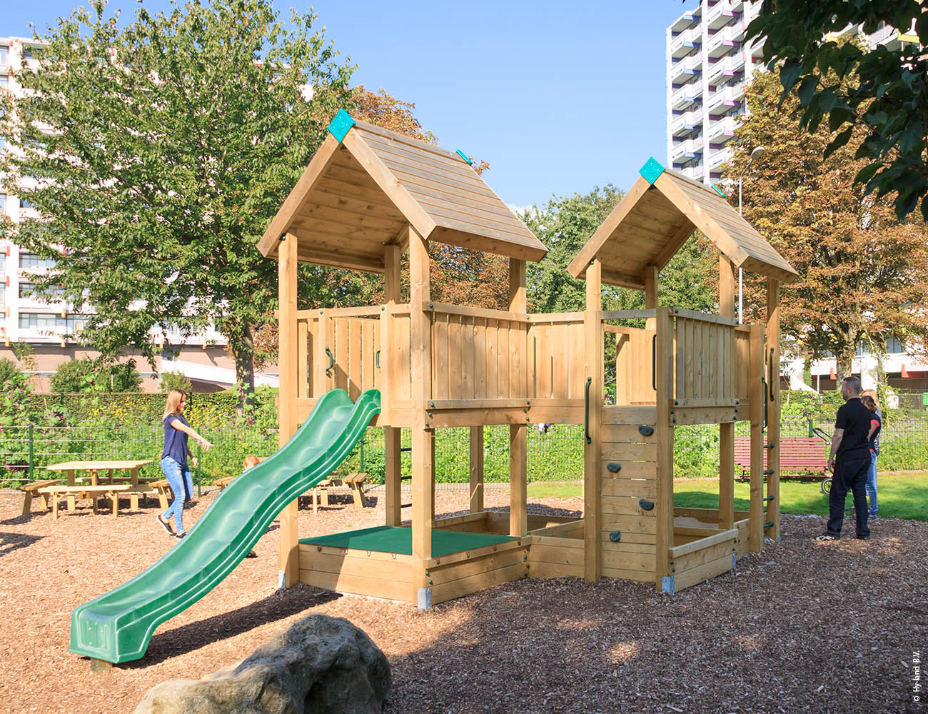 Hy-Land on vankka leikkiteline julkiseen käyttöön (standardi EN1176), mutta se sopii yhtälailla myös yksityiseen käyttöön. Suunnittelussa on otettu huomioon turvallisuuden lisäksi myös monikäyttöisyys. Kaikissa leikkitorneissa on tietenkin liukumäki sekä maan tasalla sokkelin muodostama hiekkalaatikko. Parhaimmillaan leikkitorni ajaa pitkälti myös leikkimökin virkaa. Kun yhteen ja samaan kokonaisuuteen on koottu useita toimintoja, saadaan leikkimiseen varattu alue pihassa hyödynnettyä optimaalisesti ja edullisesti.
