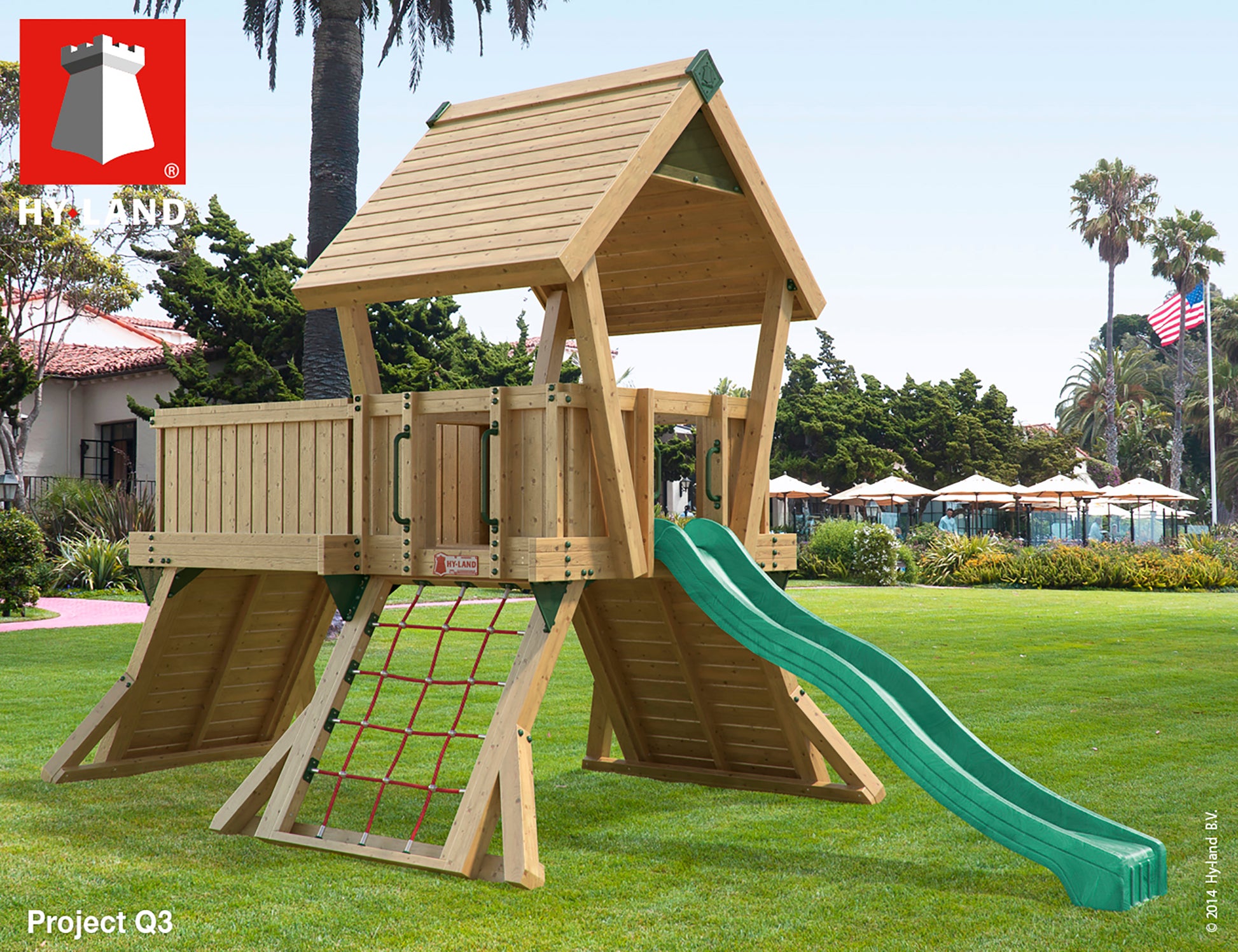 Hy-Land on vankka leikkiteline julkiseen käyttöön (standardi EN1176), mutta se sopii yhtälailla myös yksityiseen käyttöön. Q –mallisarjassa on perinteisestä poikkeava, lennokas muotoilu. Q –mallisarjassa nousu torniin tapahtuu aina kiipeilyverkon ja kiipeilyseinän kautta. Suunnittelussa on otettu huomioon turvallisuuden lisäksi myös monikäyttöisyys. Kaikissa leikkitorneissa on tietenkin liukumäki ja parhaimmillaan leikkitorni ajaa pitkälti myös leikkimökin virkaa. Kun yhteen ja samaan kokonaisuuteen on koottu useita toimintoja, saadaan leikkimiseen varattu alue pihassa hyödynnettyä optimaalisesti ja edullisesti.