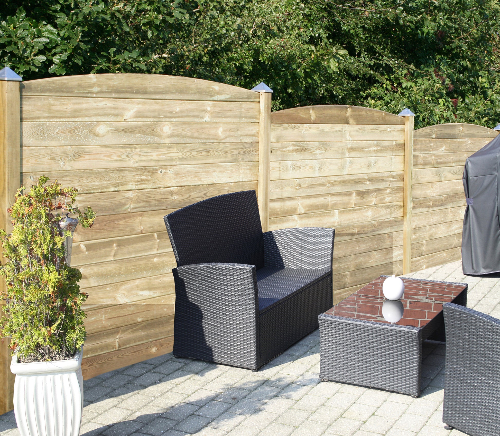 Profiiliaitaan 178,5 cm korkea, yhden paneelin mittainen lisäpakkaus ponttilauta-aitasettiin, kaareva yläosa HORTUS