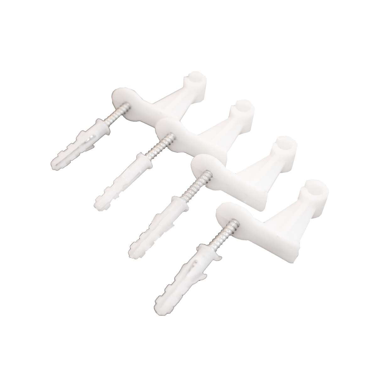 Neljä seinäkiinnikettä elementtiaidalle. Mukana ruuvit ja ruuvitulpat.