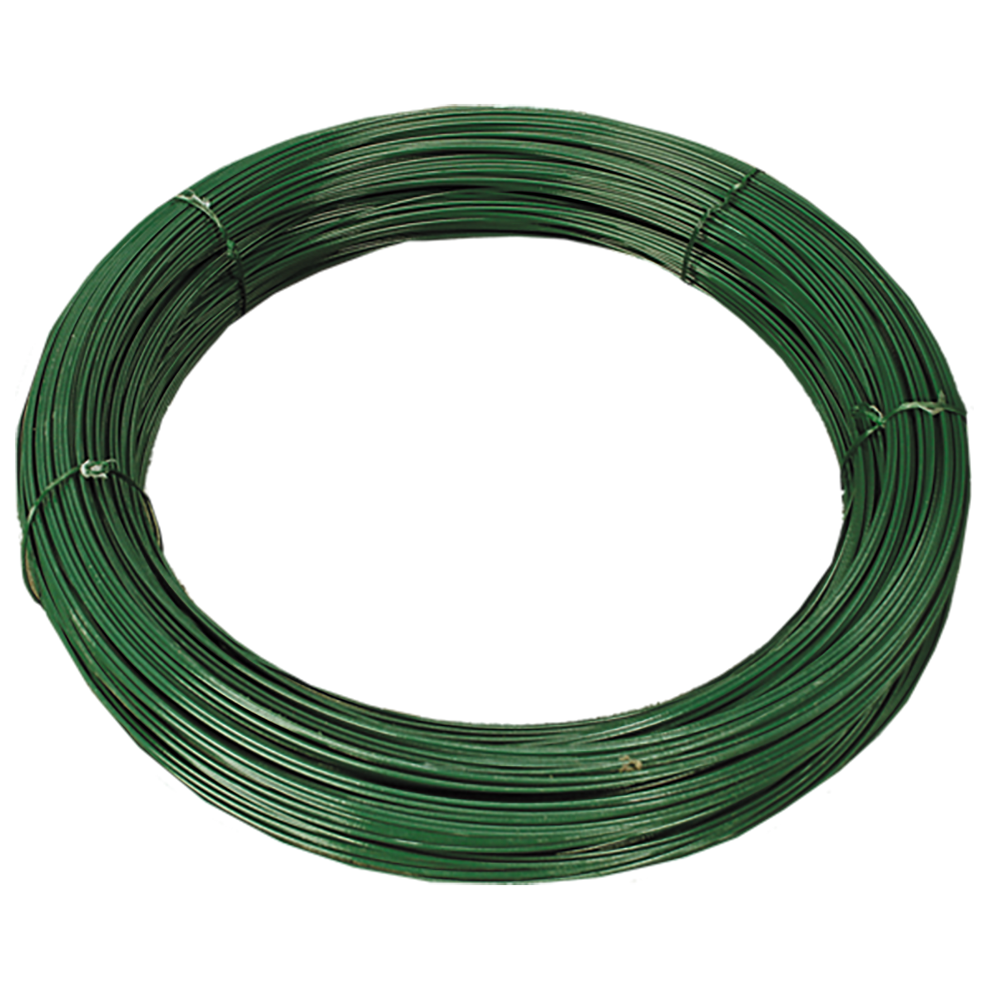 Muovitettu, galvanoitu rautalanka muovikelassa.