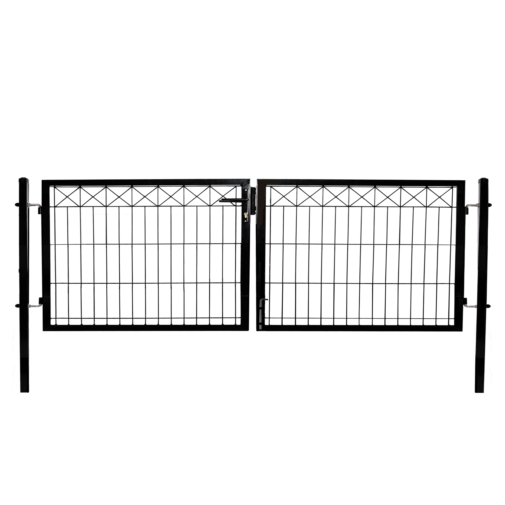 Tyylikäs musta metallinen pariportti, jossa on "x"-koristelu yläosassa. Pariportti on valmistettu 40x40 mm:n profiilista Ø5/5/5 mm:n langalla, joka hitsauksen jälkeen on jauhemaalattu. Toimitukseen sisältyy 2 kpl. tolppia 60 x 60 x 1500mm, kahva, lukko, avaimet sekä 4 kpl. asennuskiinnikkeitä.