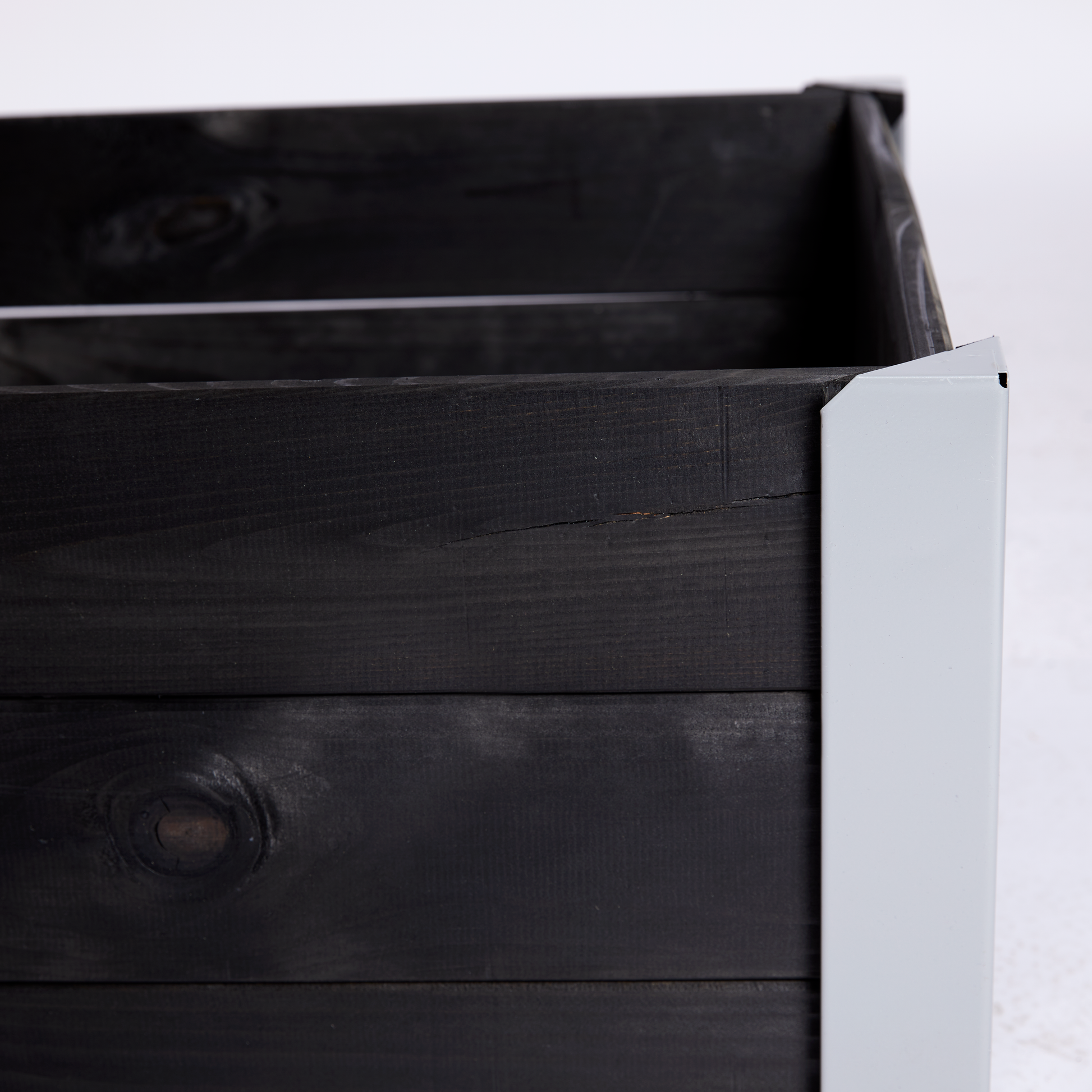 Istutuslaatikko, maalattua puuta, musta, metallikulmilla 33 x 93 x 53 HORTUS