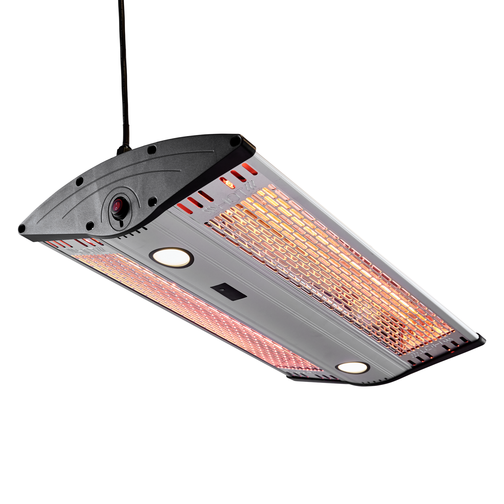 Kätevä ja tyylikäs katosta ripustettava terassilämmitin. Voidaan ripustaa pöydän tai oleskelutilan yläpuolelle. Hienosti viimeistelty runko on valmistettu huoltovapaasta alumiinista. Lämpöelementit on jaettu kahdelle puolelle, joista kumpikin voidaan käynnistää erikseen riippuen esimerkiksi pöytäseurueen henkilömäärästä. Varusteina lisäksi LED- valot ja kaukosäädin.