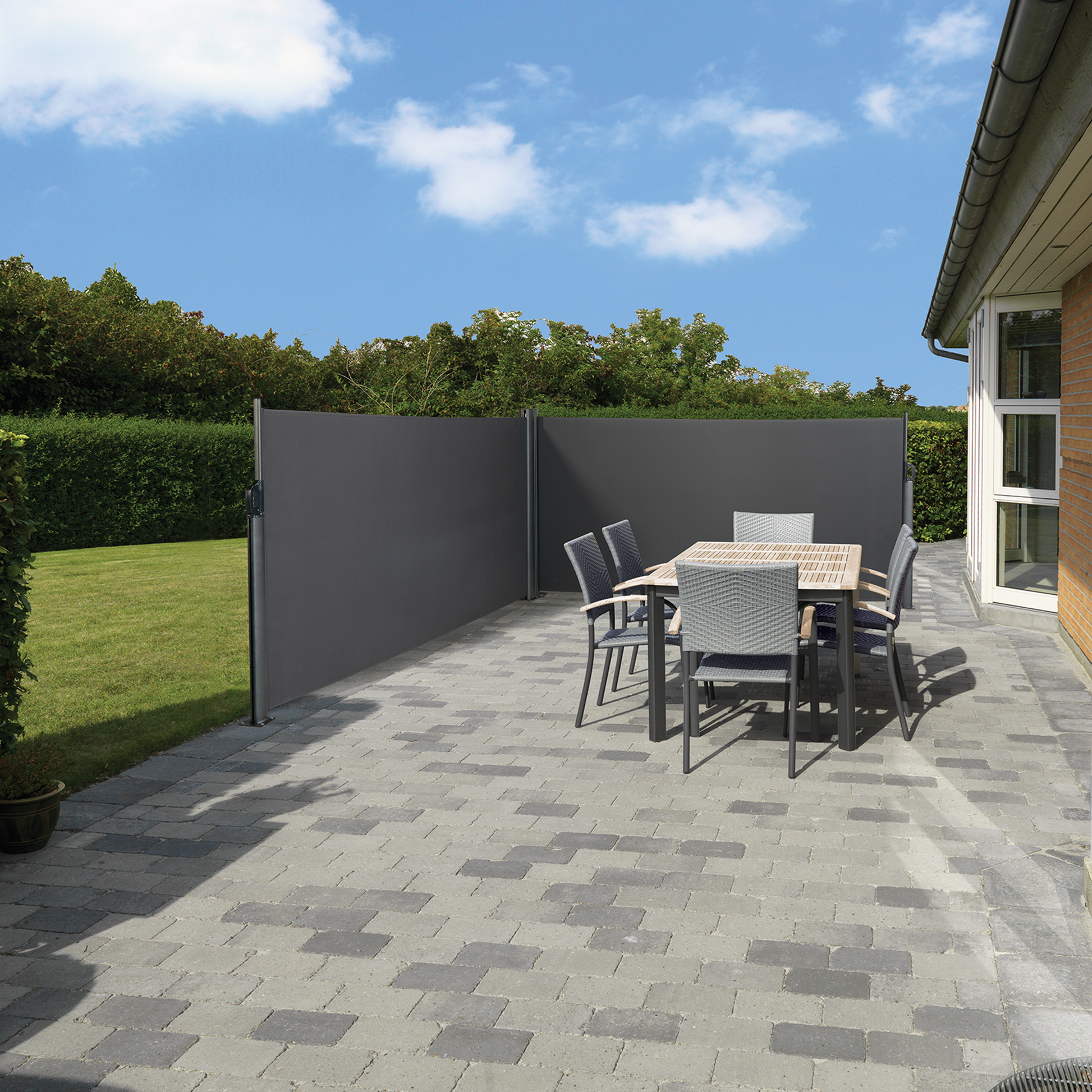 HORTUS- sisäänvedettävä sivumarkiisi on oivallinen tuulisuoja ja näkösuoja terassille ja puutarhaan.