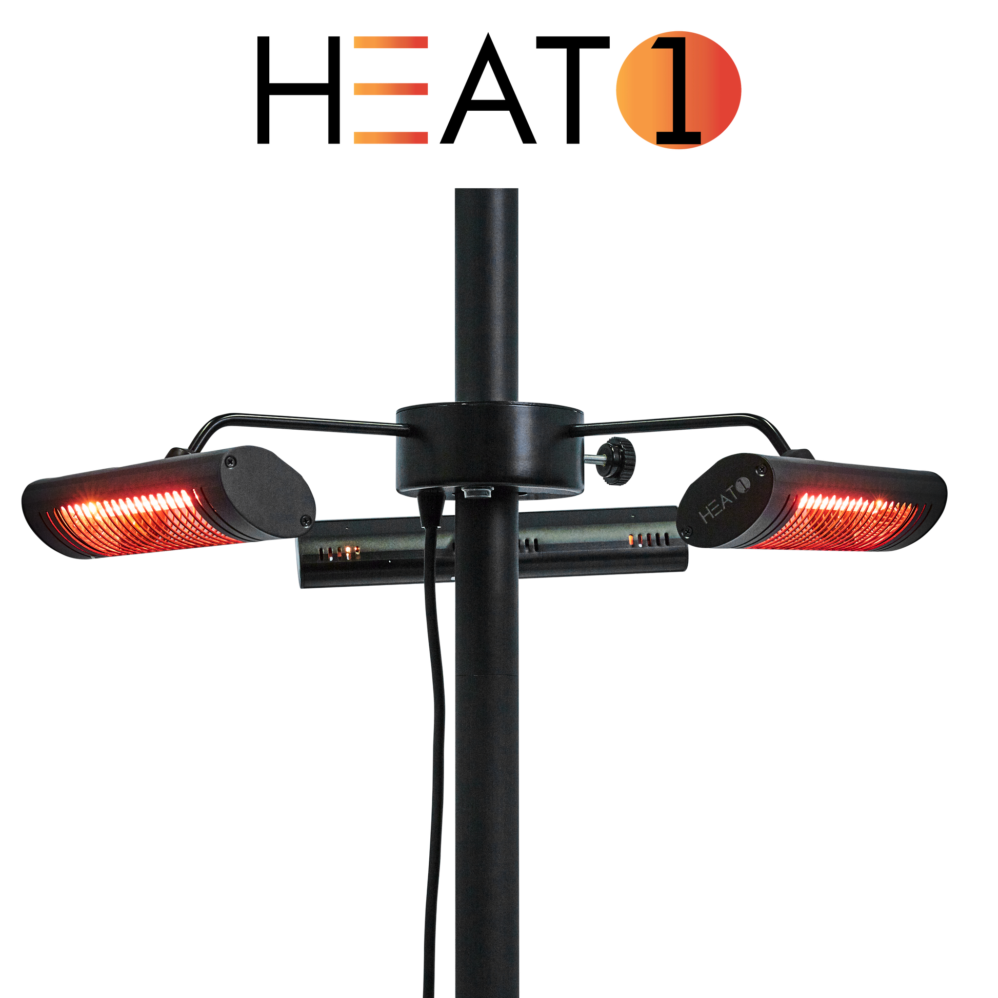 Terassilämmitin vaativaan käyttöön. Tyylikkään elegantti ja HEAT1 -terassilämmitin, jossa on kolme 670 W lämmitintä asennettavaksi esimerkiksi auringonvarjon alle. Sopii kahviloille, ravintoloille ja yksityiskäyttöön. Tämä mallisto on kehitetty ammattikäyttöön ja erityisen laatutietoisille kuluttajille, jotka arvostavat yksinkertaisen tyylikästä muotoilua ja ylivoimaista tehokkuutta. Nerokas kiinnitysmekanismi on suunniteltu siten, että asennus onnistuu nostamatta auringonvarjoa jalustaltaan. Sopii tankoihin, joiden halkaisija on Ø 25-60 mm. Jokainen kolmesta lämmittimestä on suunnattavissa yksilöllisesti sellaiseen kulmaan, joka on optimaalista lämmön jakautumiselle ja niinpä lämmittimen teho kattaa jopa 26m2 alan. Vakiovarusteisella kaukosäätimellä voidaan ohjata jokaista kolmea lämmitintä erikseen. Lämmittimen kotelosuojausluokka on IP65 (pölytiivis, suojattu vesisuihkulta). HEAT1 -terassilämmittimien takuu on 5 vuotta.