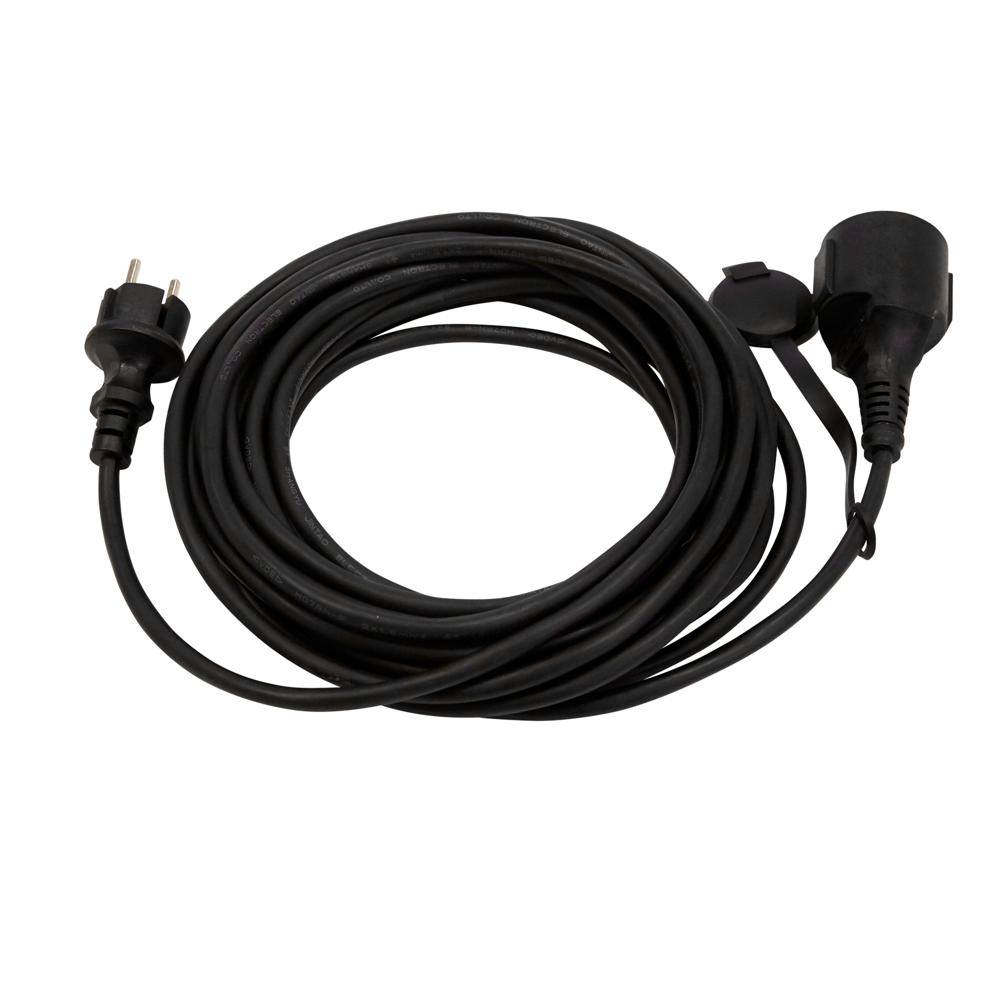HEAT1 -jatkojohto ulkokäyttöön. 10 metriä. 16 A. Materiaalina PVC/kumi. Johtimet ovat 2 x 1.52 mm. Kotelosuojausluokka on IP44 (roiskevesisuojaus).
