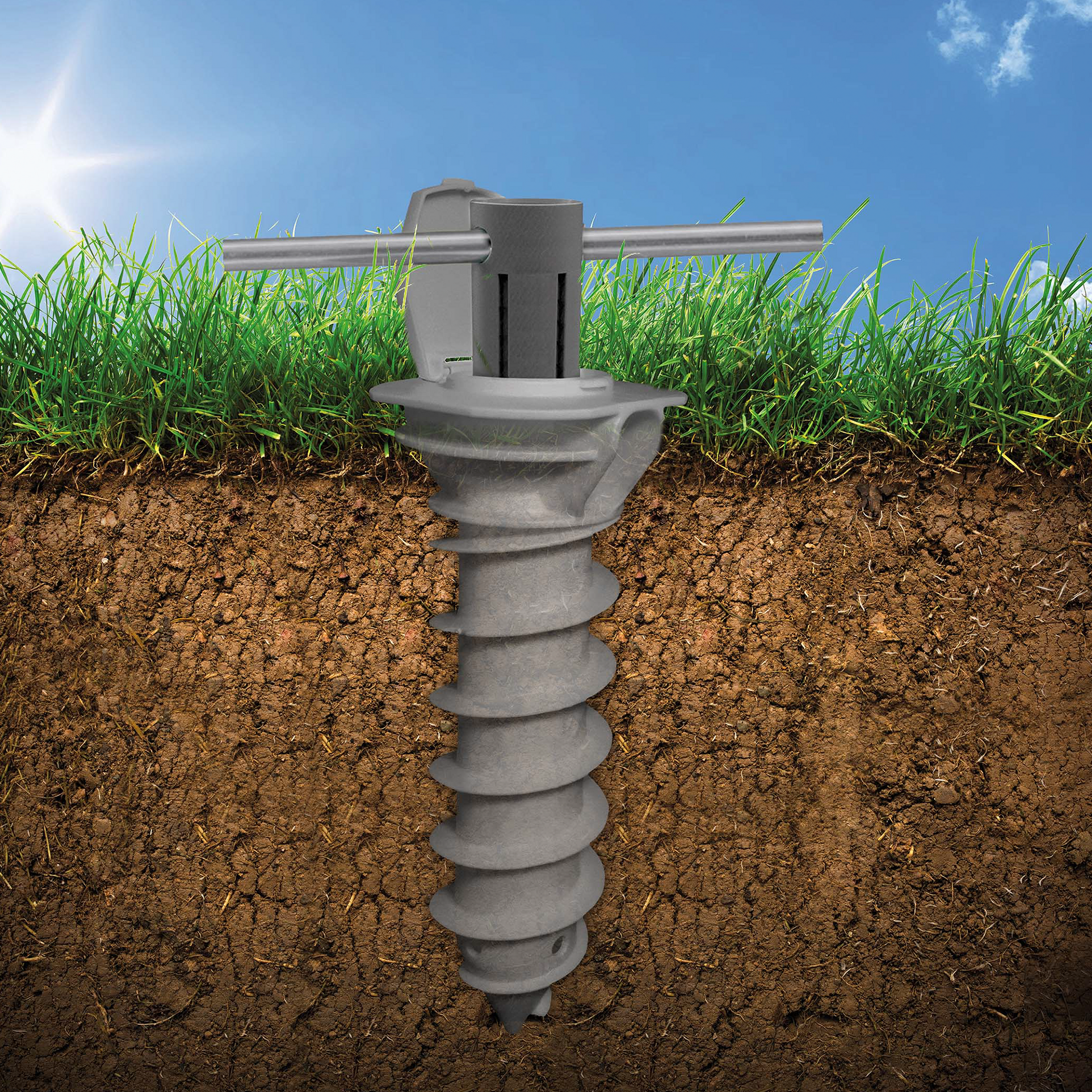 JUWEL-asennusjalka on ihanteellinen valinta erilaisten rakenteiden, kuten pyykinkuivaustelineiden, juhlatelttojen ja aitojen tukevaan maa-ankkurointiin. Asennusjalka soveltuu Ø 55, 50 ja 40 mm halkaisijaltaan oleville putkille. Mukana tulee kätevä asennustyökalu, jonka avulla jalka on helppo ruuvata maahan niin, että se asettuu maanpinnan tasalle ja näin nurmikon huolto helpottuu eikä vaaraa vaurioista ruohonleikkurille ole. Asennus onnistuu ilman betonia, jolloin voit helposti ruuvata asennusjalan irti ja siirtää toiseen paikkaan. Voit myös käyttää asennuksessa betonia, jos haluat pysyvästi yhdessä paikassa pysyvän asennuksen. Pakkauksessa on mukana vedenpitävä suojakansi.