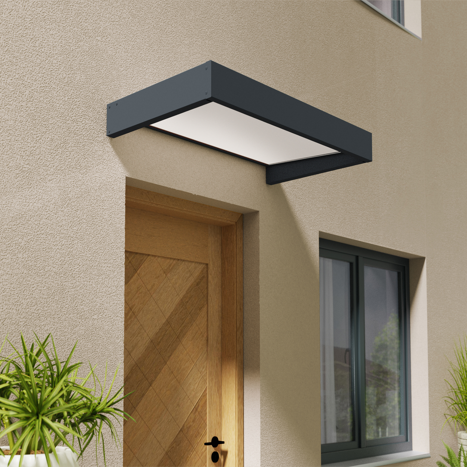 Tämä modernin tyylikäs sekä huoltovapaa ovikatos suojaa ja viimeistelee sisäänkäyntisi tai ikkunasi ympärivuotisesti. Tämä ovikatos on poikkeuksellisen puhdaslinjainen muotoilultaan ja erityisen kestävä rakenteeltaan.