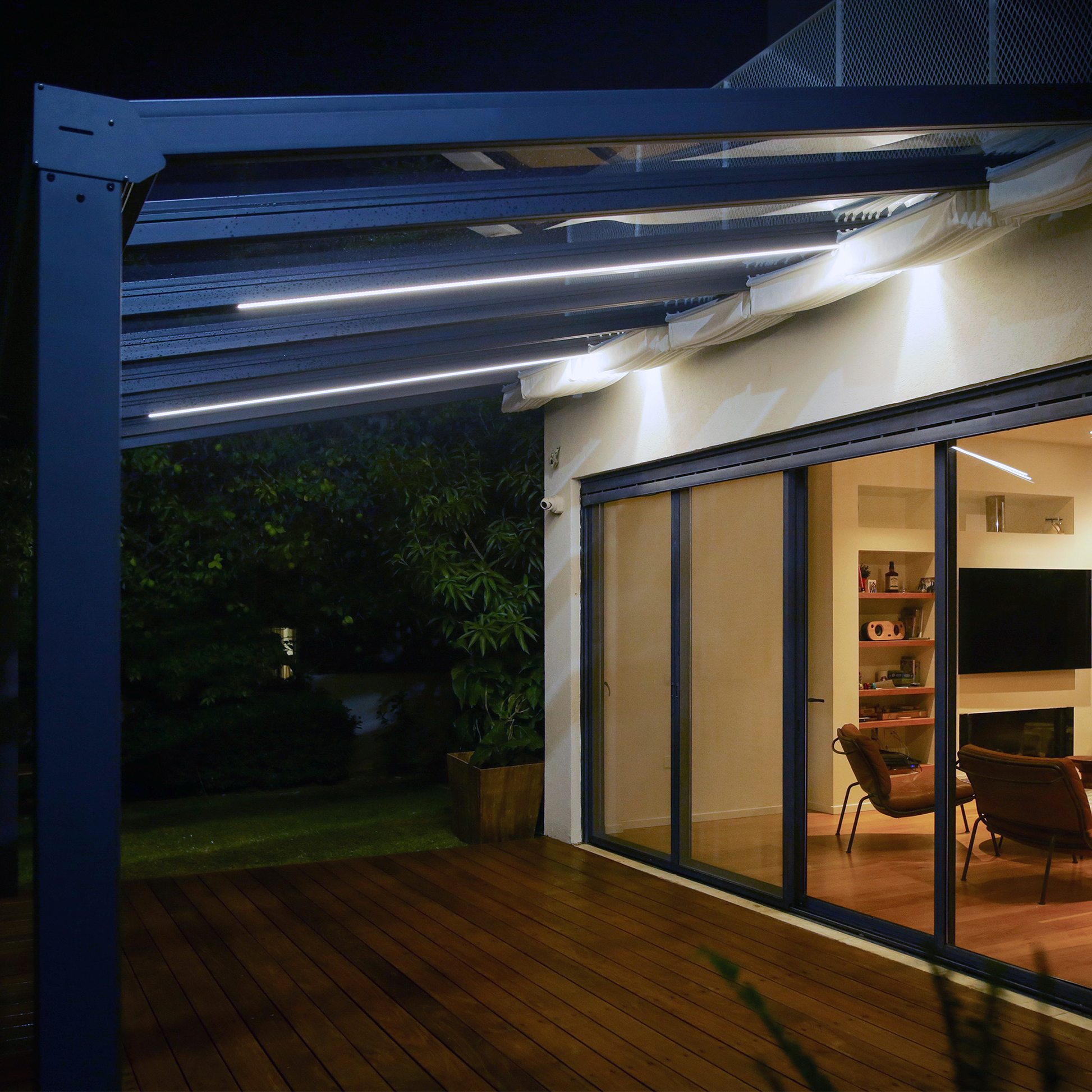 Miksi keskeyttäisit ulkona oleskelun vain siksi, että ilta pimenee? Tämä valosarja tuo terassikatoksellesi, paviljongillesi tai viherhuoneellesi lisää käyttöaikaa valaisten sen juuri sopivaksi himmentämälläsi valolla. Tämä valosarja on erityisesti suunniteltu sopimaan Palram - Canopia -tuotteiden alumiiniprofiileihin. Asennus onnistuu muutamissa minuuteissa. Kaukosäätimen kantomatka on jopa 15 metriä.