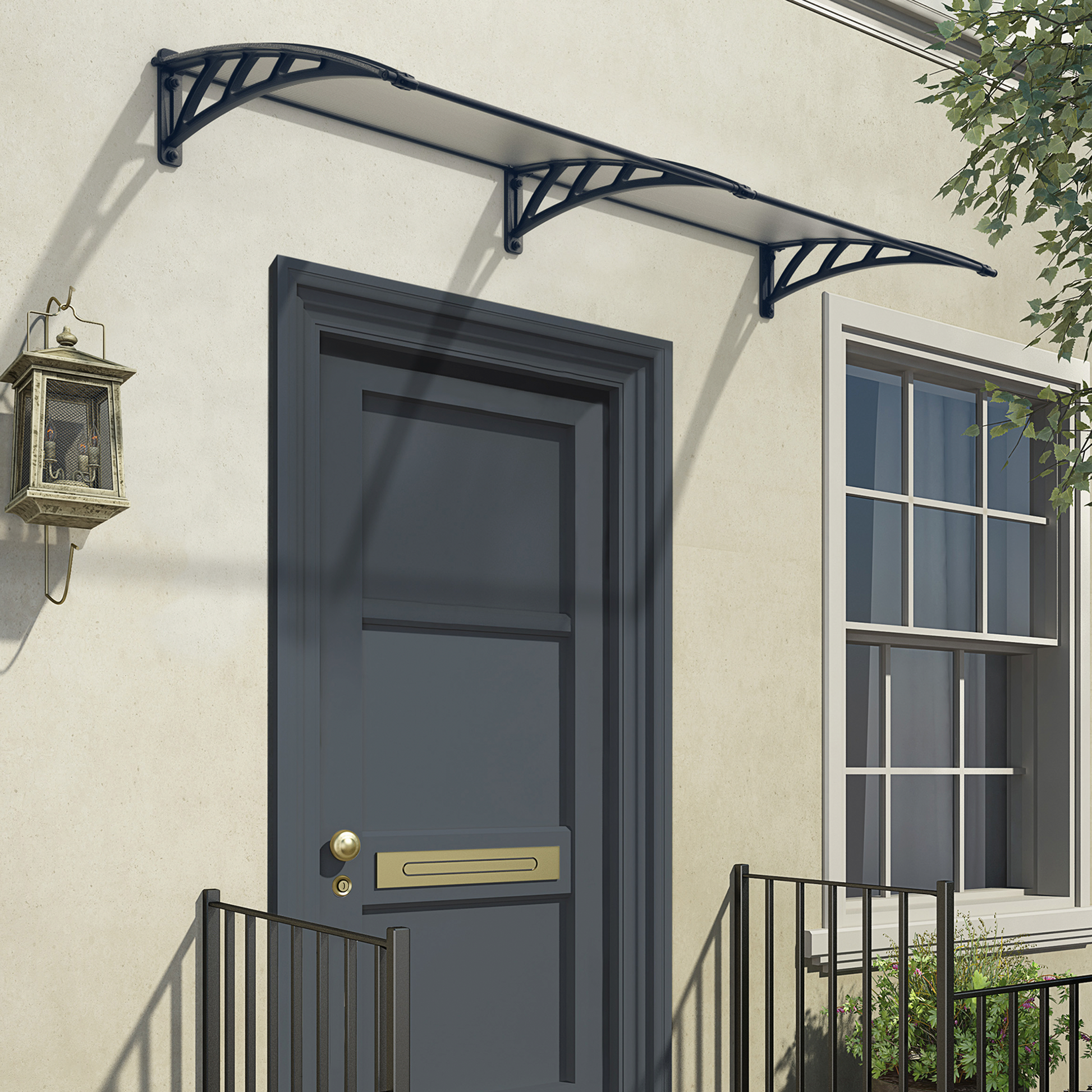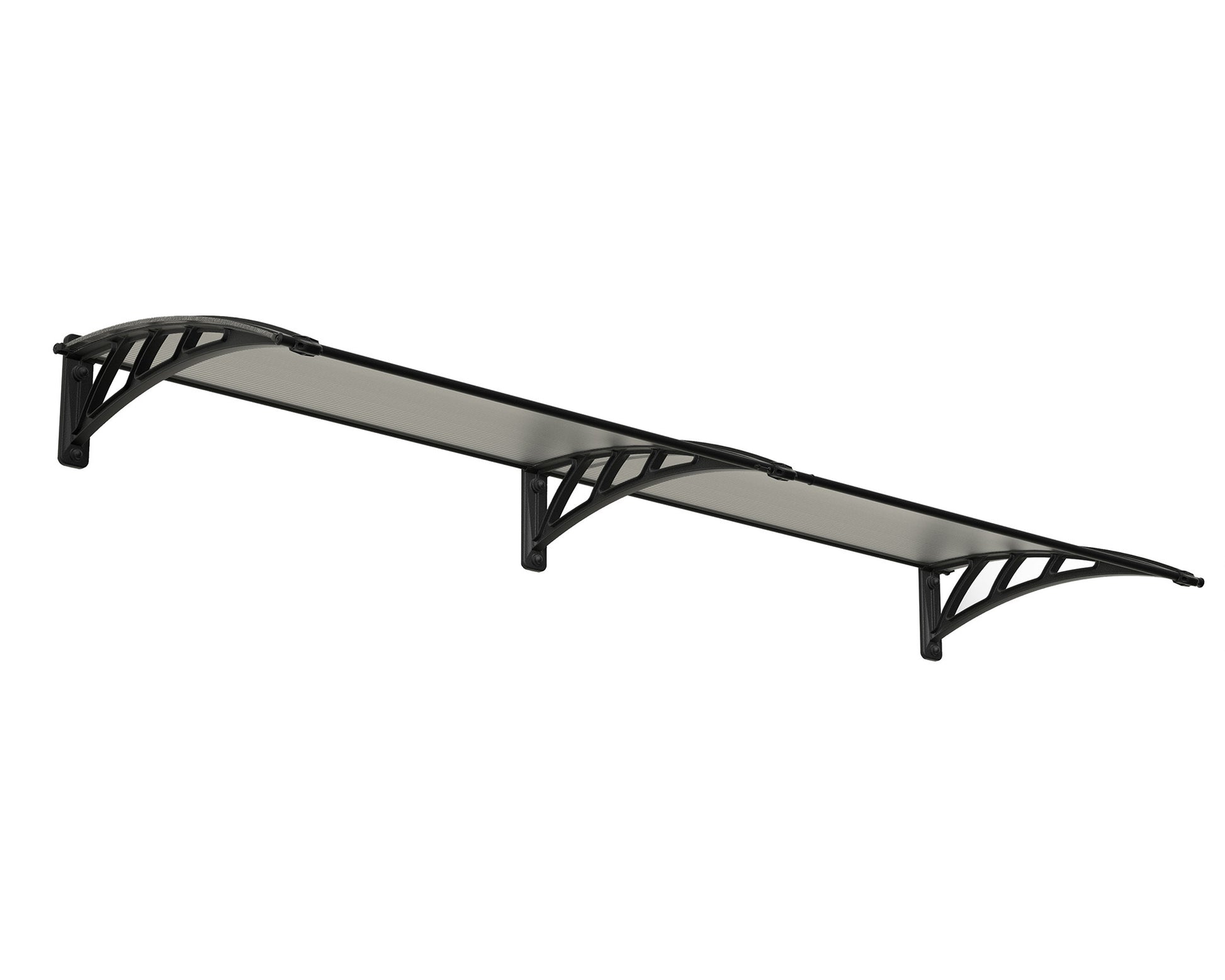 Tämä nykyaikainen, kaareva katos suojaa kätevästi oviaukkoa tai ikkunaa ankarilta sääolosuhteilta. Katoksen materiaalit ovat ympäristöystävällisiä. Katos lisää koko rakennuksen tyyliä ja arvoa.