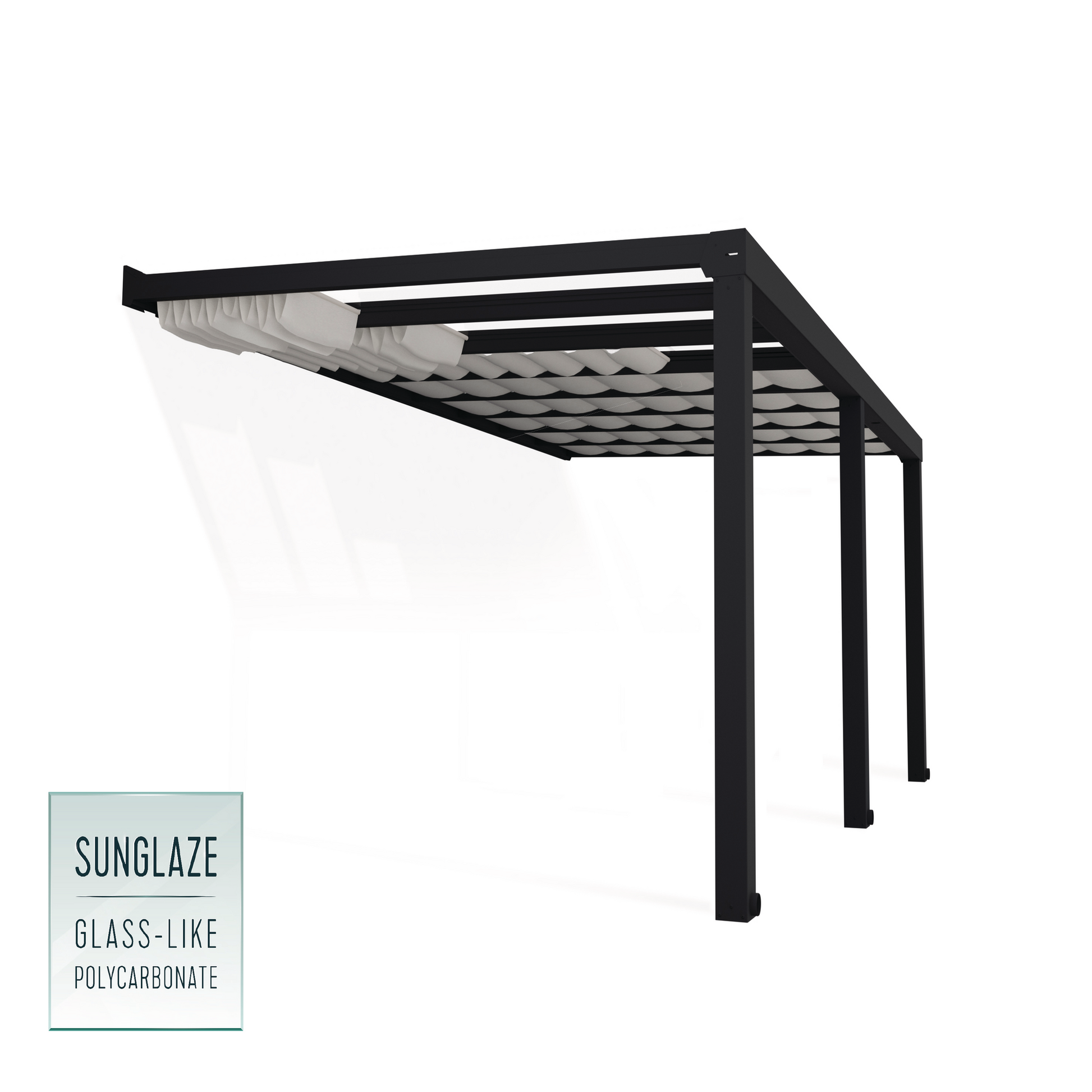 Käytännössä rikkoutumattomat, 100% UV -suojatut kattopaneelit on valmistettu 4 mm paksusta polykarbonaatista suojaten terassilla olijoita UV -säteilyltä, sateelta ja lumelta.