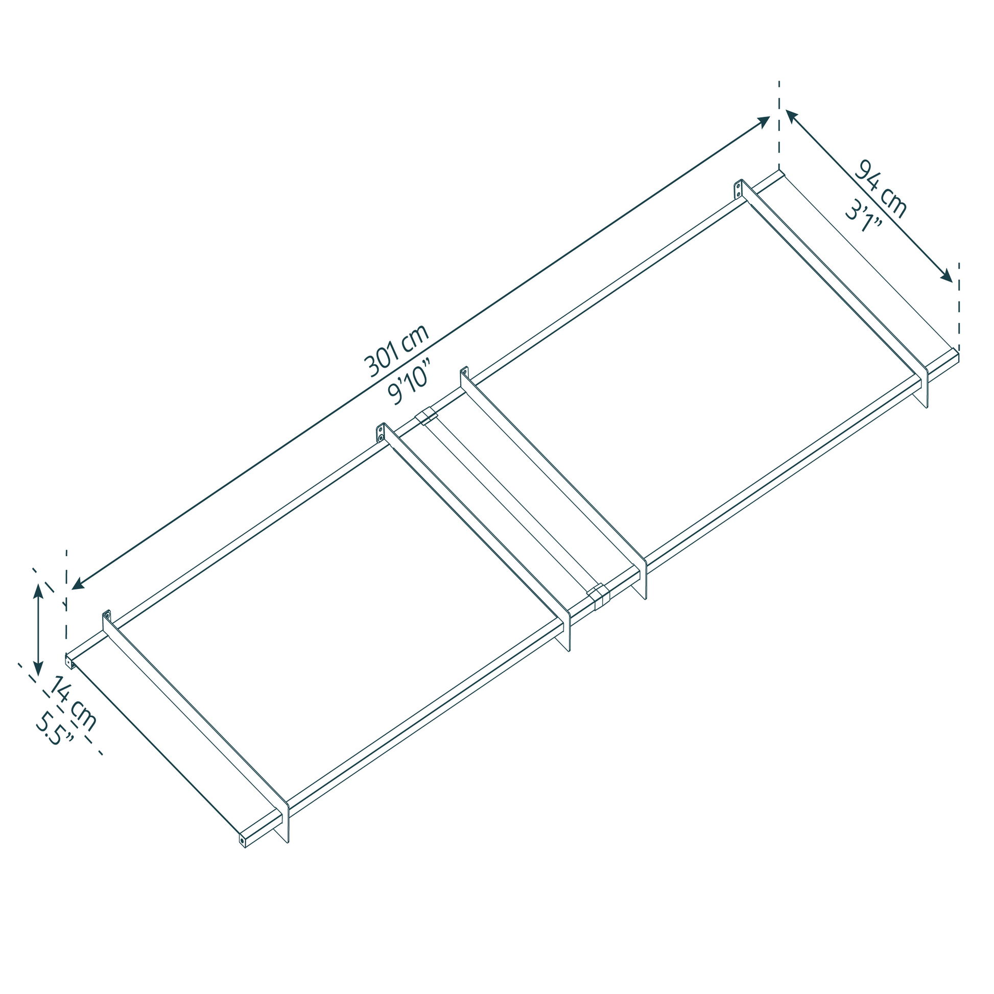 Mitat Nancy 3000: korkeus 14 pituus 301 x leveys 94 cm