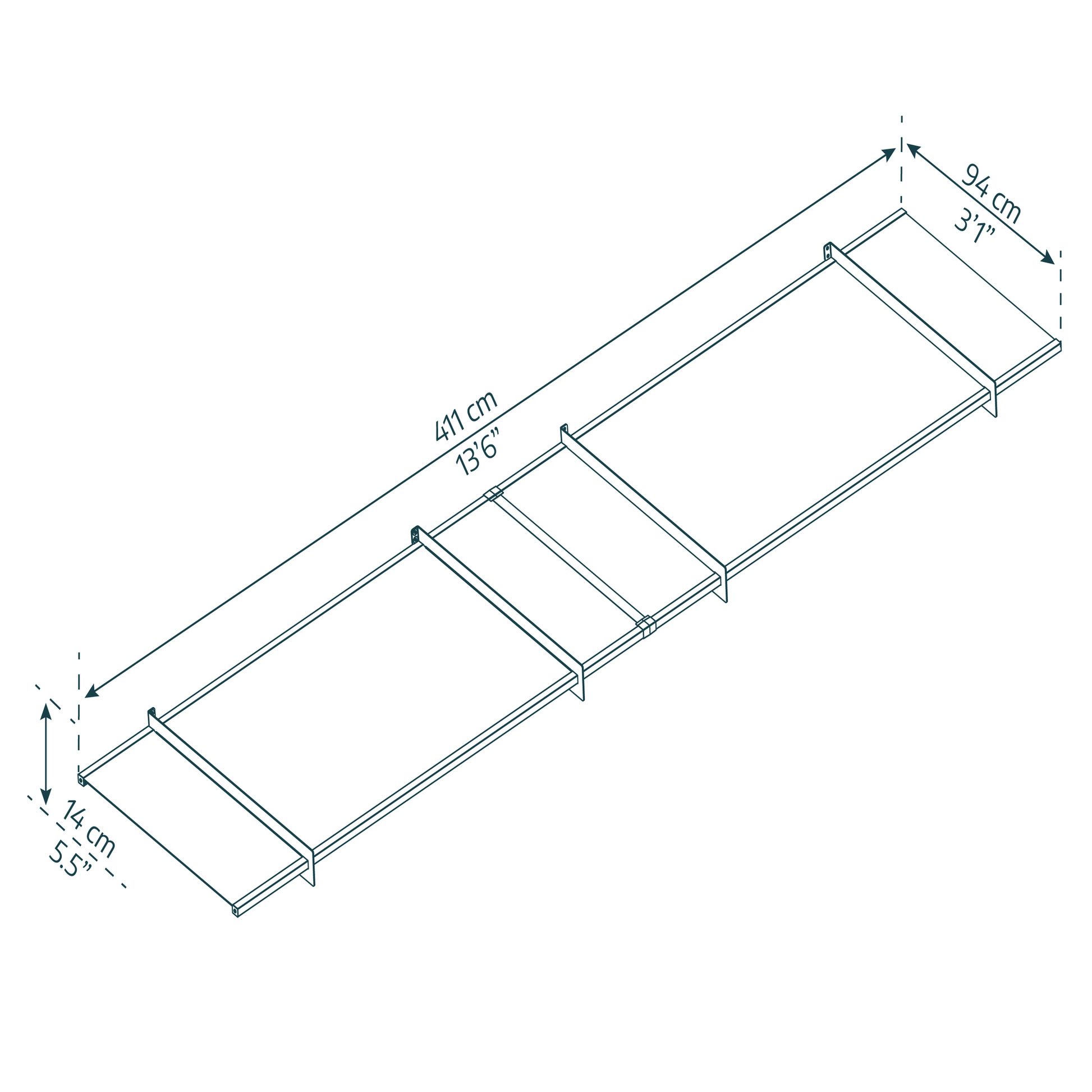 Mitat Nancy 4100: korkeus 14 pituus 411 x leveys 94 cm