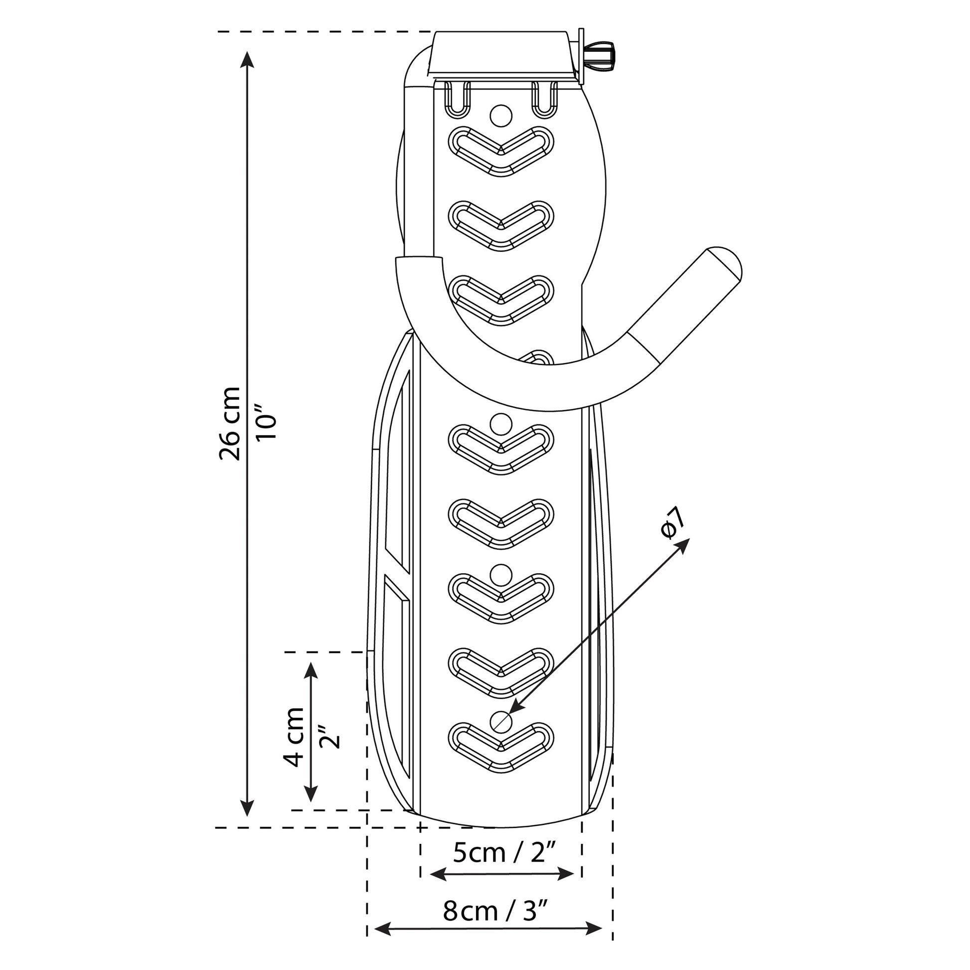 Säilytä pyörääsi turvallisesti pystysuorassa pyörätelineessä. Ripusta etupyörästä kumipäällysteiseen koukkuun ja aseta takapyörä seinää vasten säästääksesi tilaa. Erittäin vakaa, musta, jauhemaalattu seinäkiinnike.