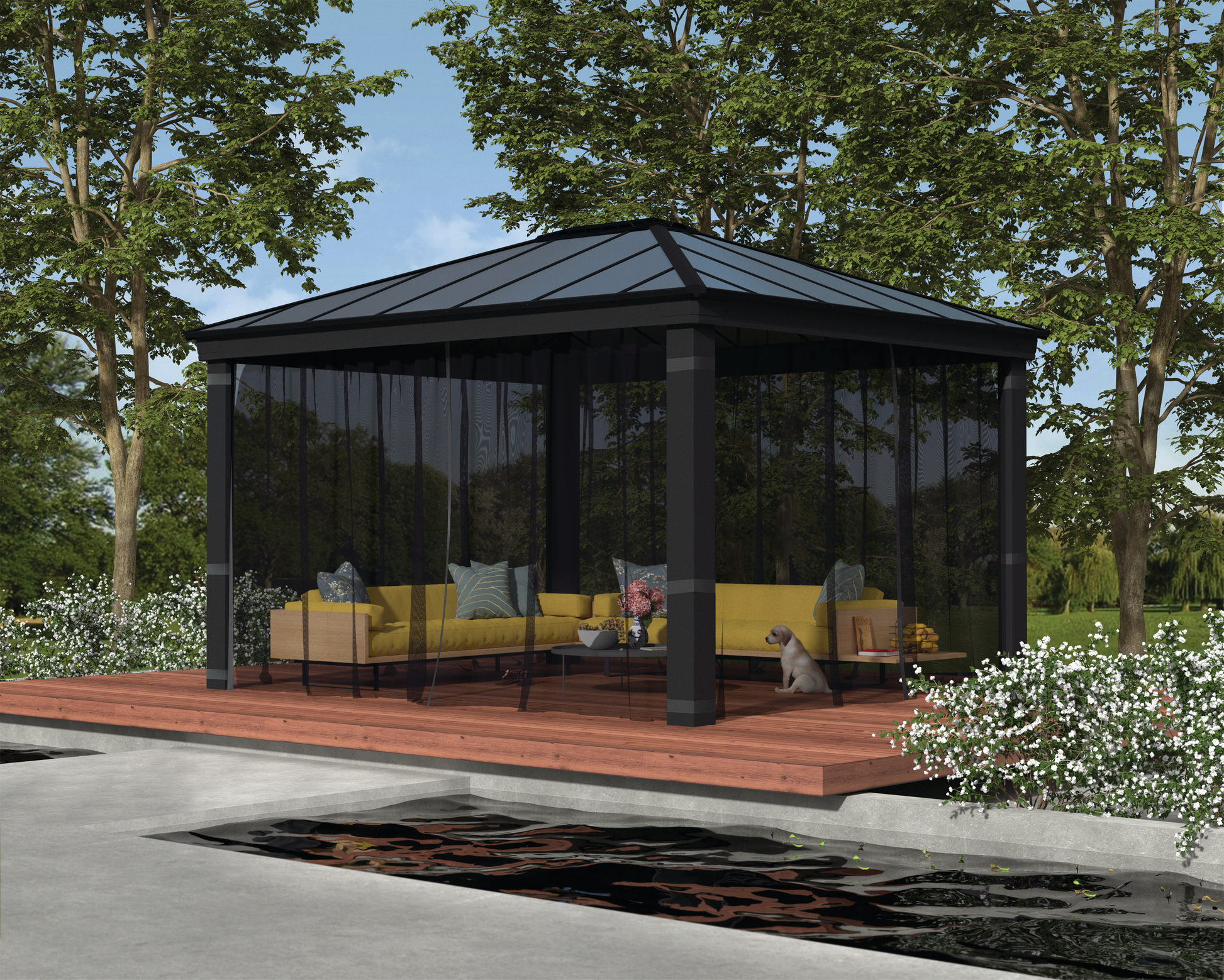 Dallas 4300 -hyttysverkkosarja on hyvännäköinen ja helppokäyttöinen. Tarjoaa viihtyvyyttä paviljonkiin: Sallii ilman virtauksen ja pitää samalla epämiellyttävät hyönteiset loitolla. Sarjan mukana tulee koukut, jotka on helppo kiinnittää verhokiskoihin.