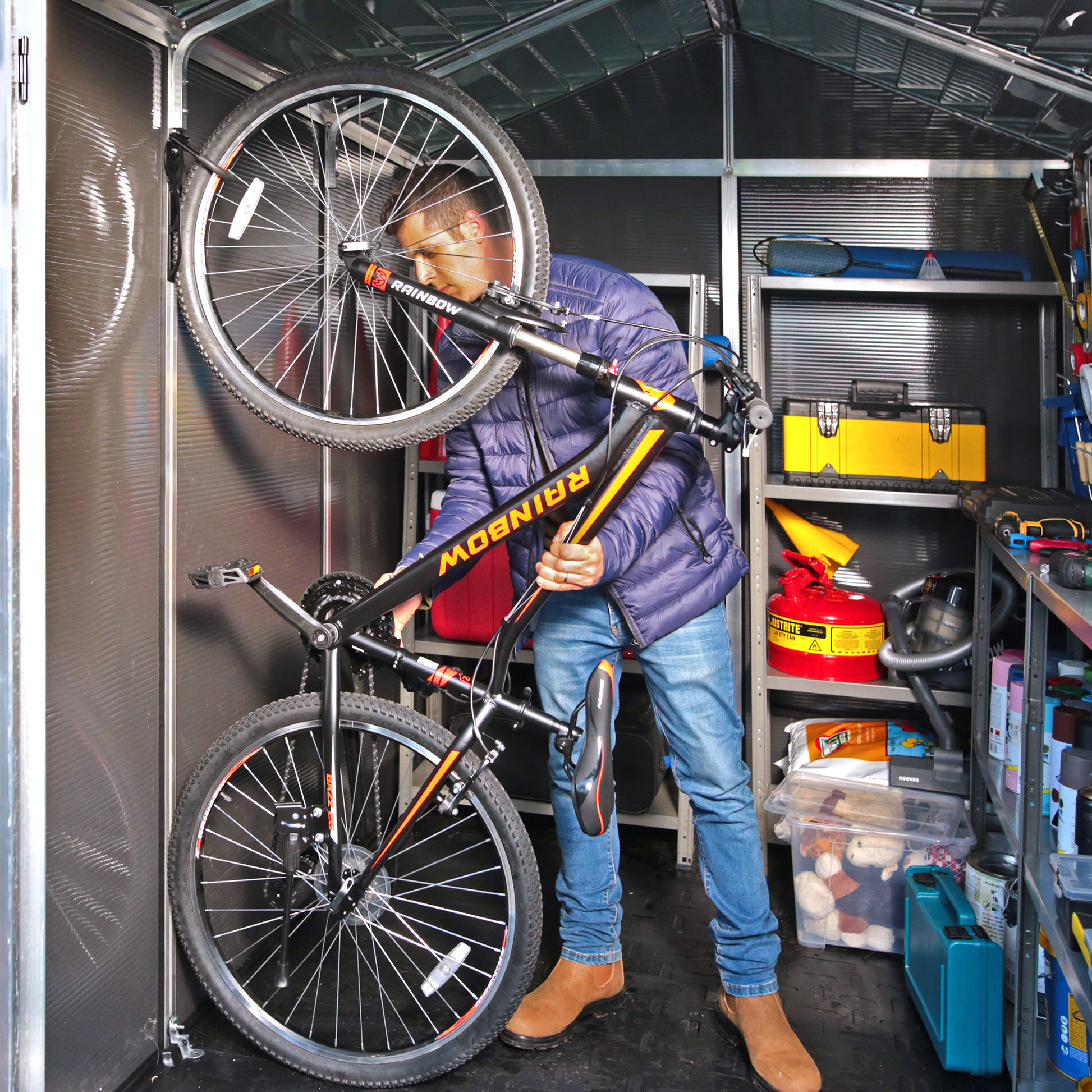 Lisävarusteet: erikseen ostettavissa LED -valosarja piilotettavalla johdotuksella, polkupyörätelineet, maa-ankkurit ja säilytyshyllyt