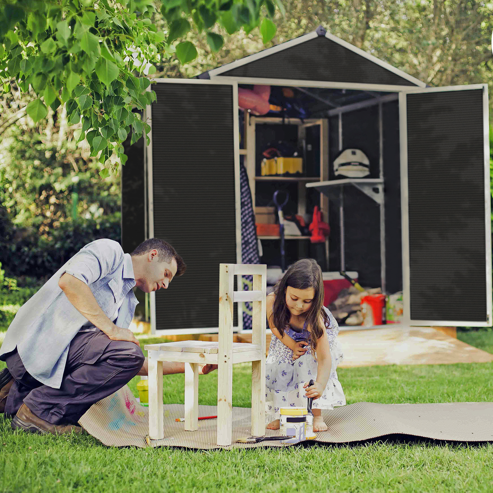 Tämä puutarhavarasto on varustettu läpinäkyvillä kattopaneeleilla, jota tuovat varastoon valoa, mutta suodattavat haitalliselta UV -säteilyltä, joka voisi haalistuttaa ja vaurioittaa varastossa säilytettäviä tavaroita.