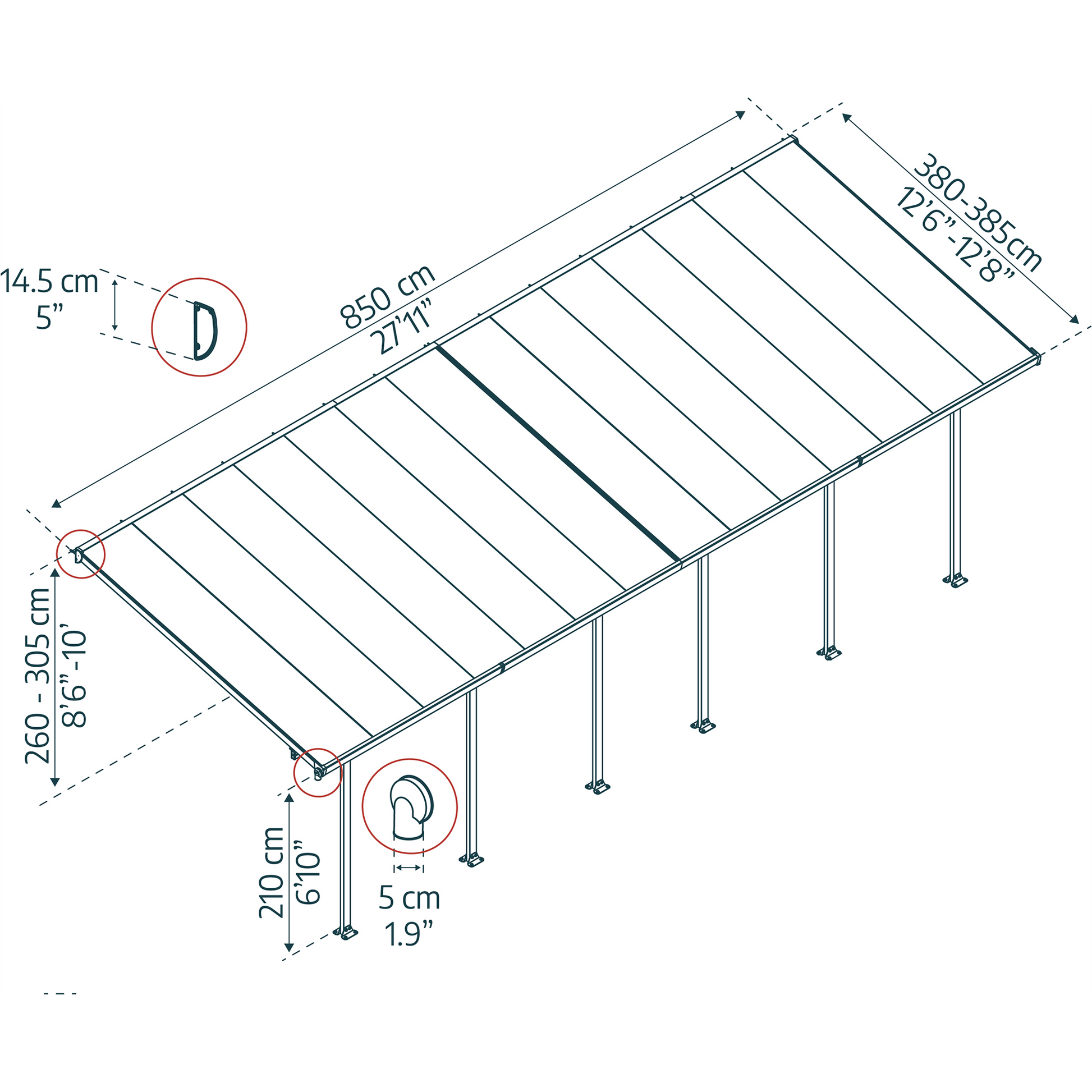 Terassikatos Feria 4 x 8,50 m, antrasiitti Palram - Canopia7290108134872