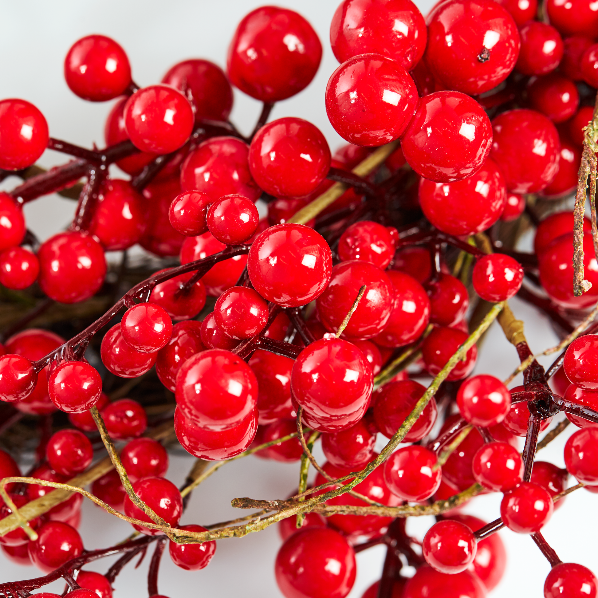 Kaunis ja tyylikäs kranssi punaisilla marjoilla. Sopii koristeluun niin syksyllä kuin jouluna. Mitat Ø60 cm.
