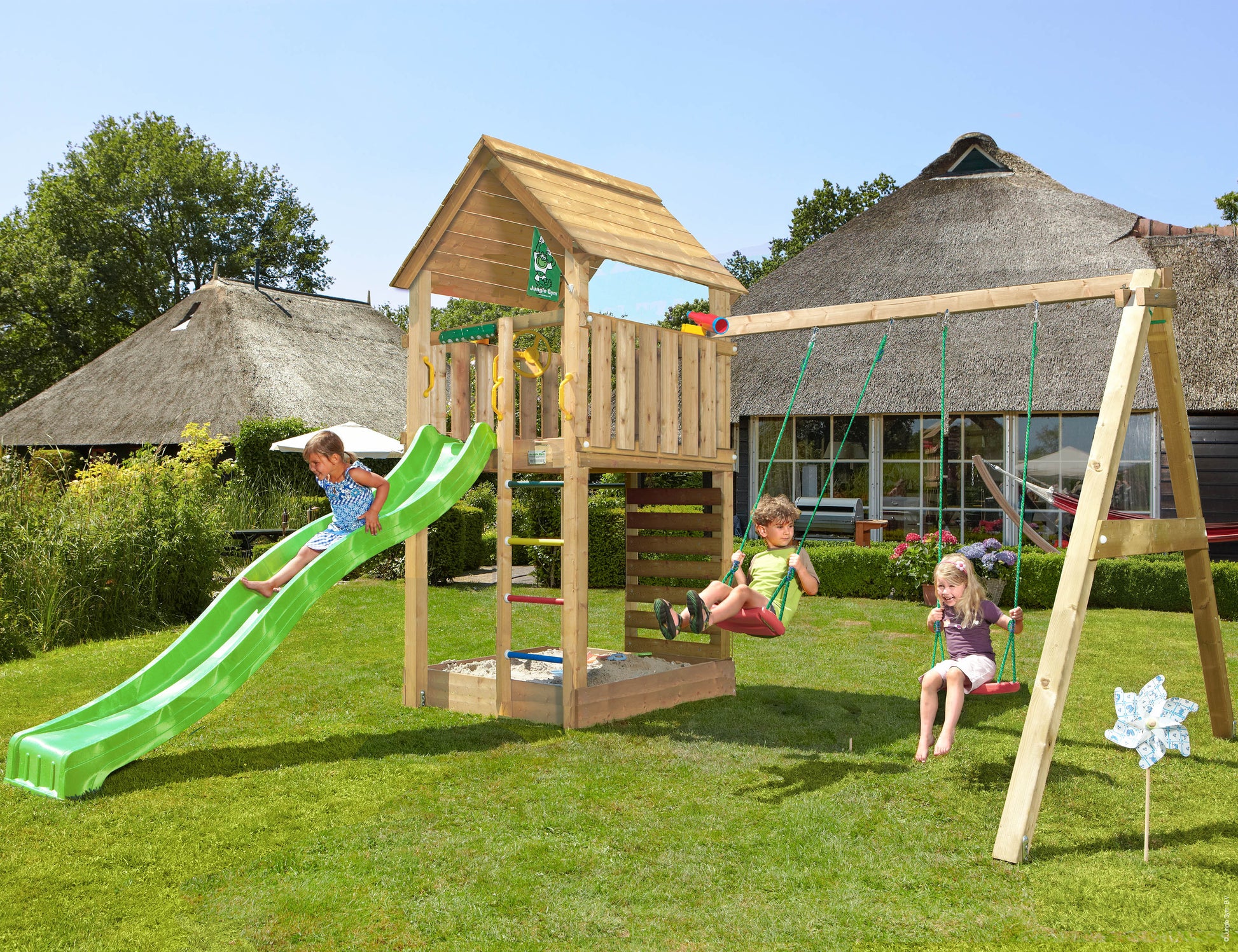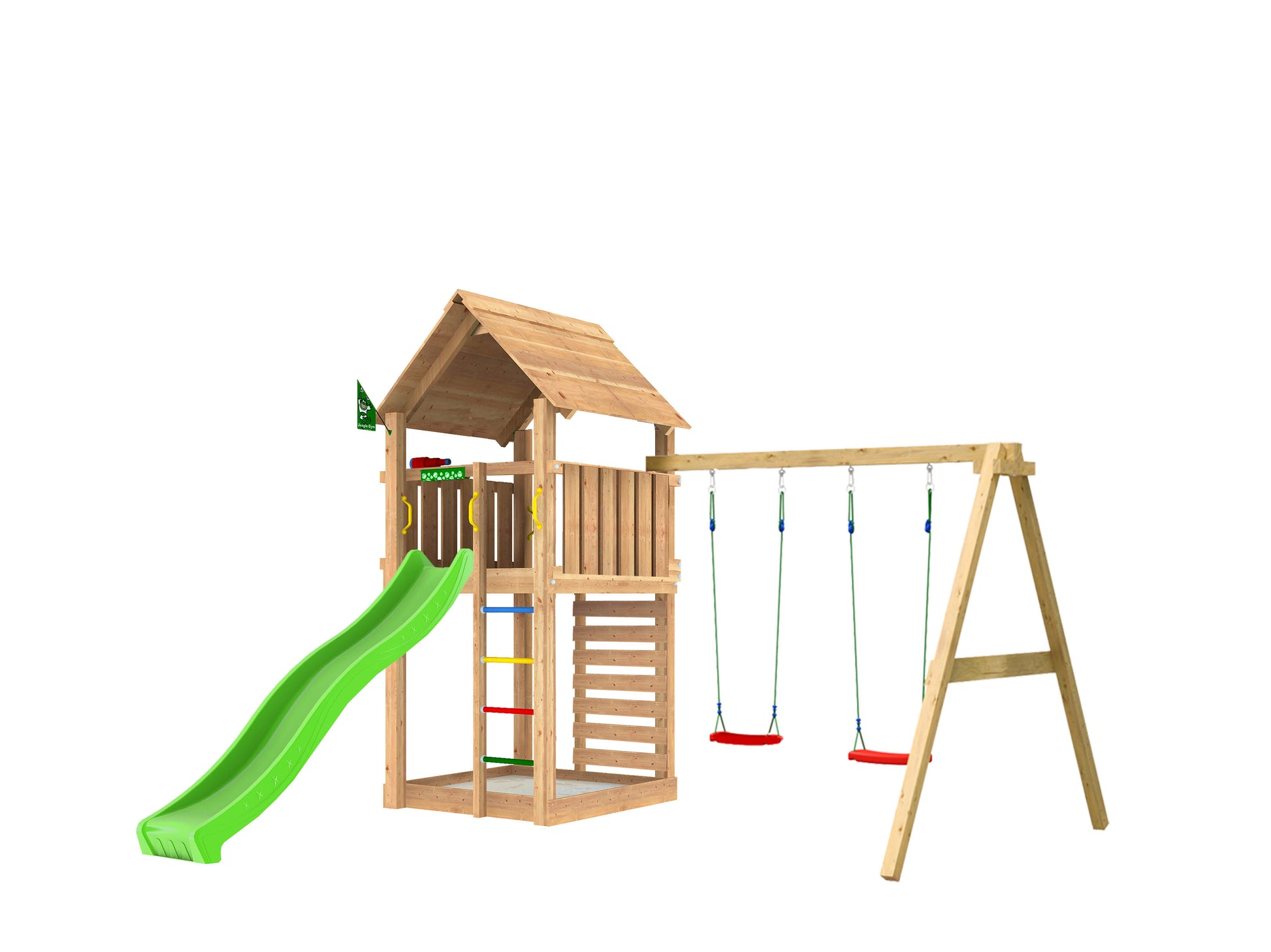 Leikkitorni Jungle Gym Cabin 2.1 ja 2-Swing Module 220 ja vihreä liukumäki5705858722207