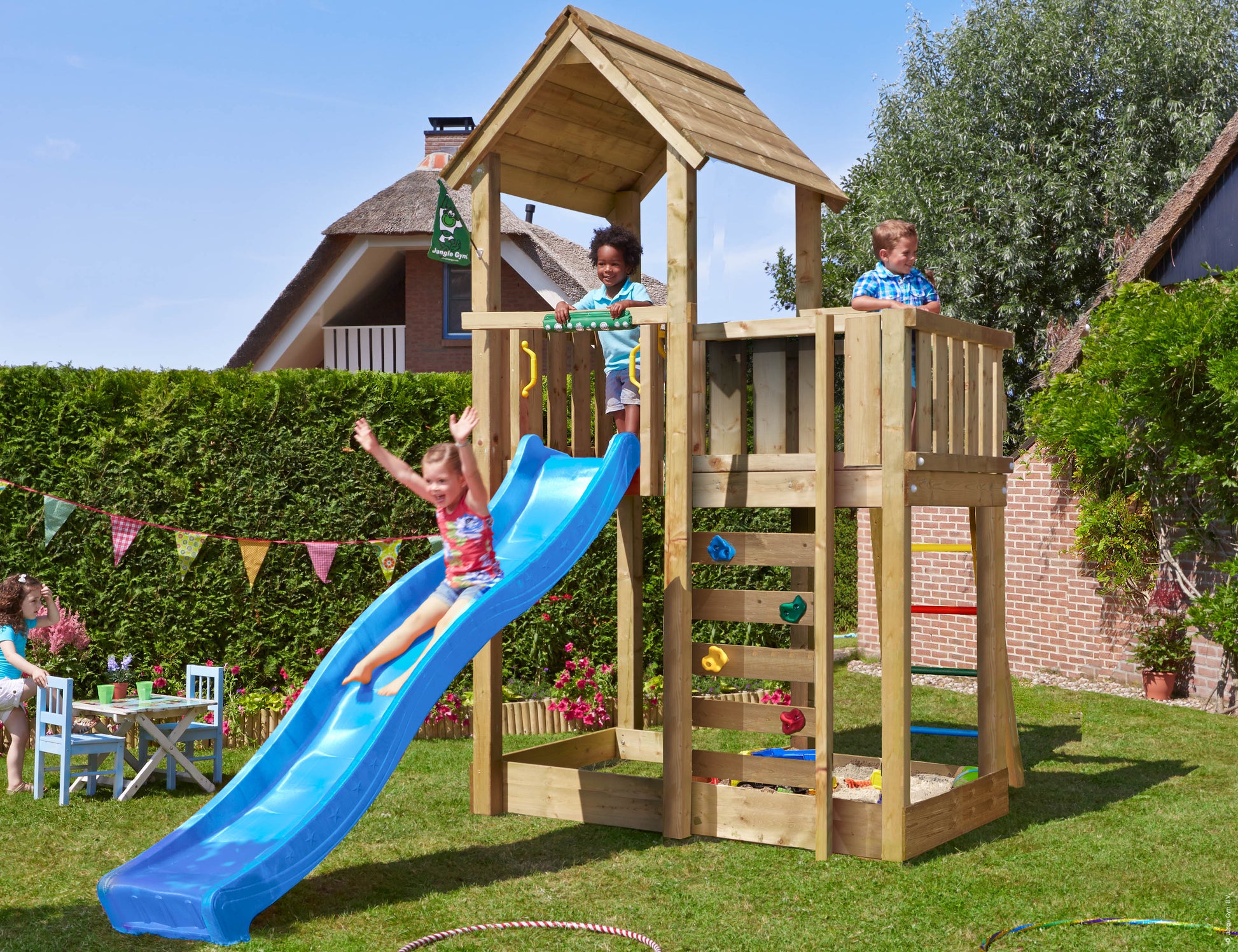 Leikkitorni Jungle Gym Mansion 2.1, sininen liukumäki ja 120 kg hiekkaa