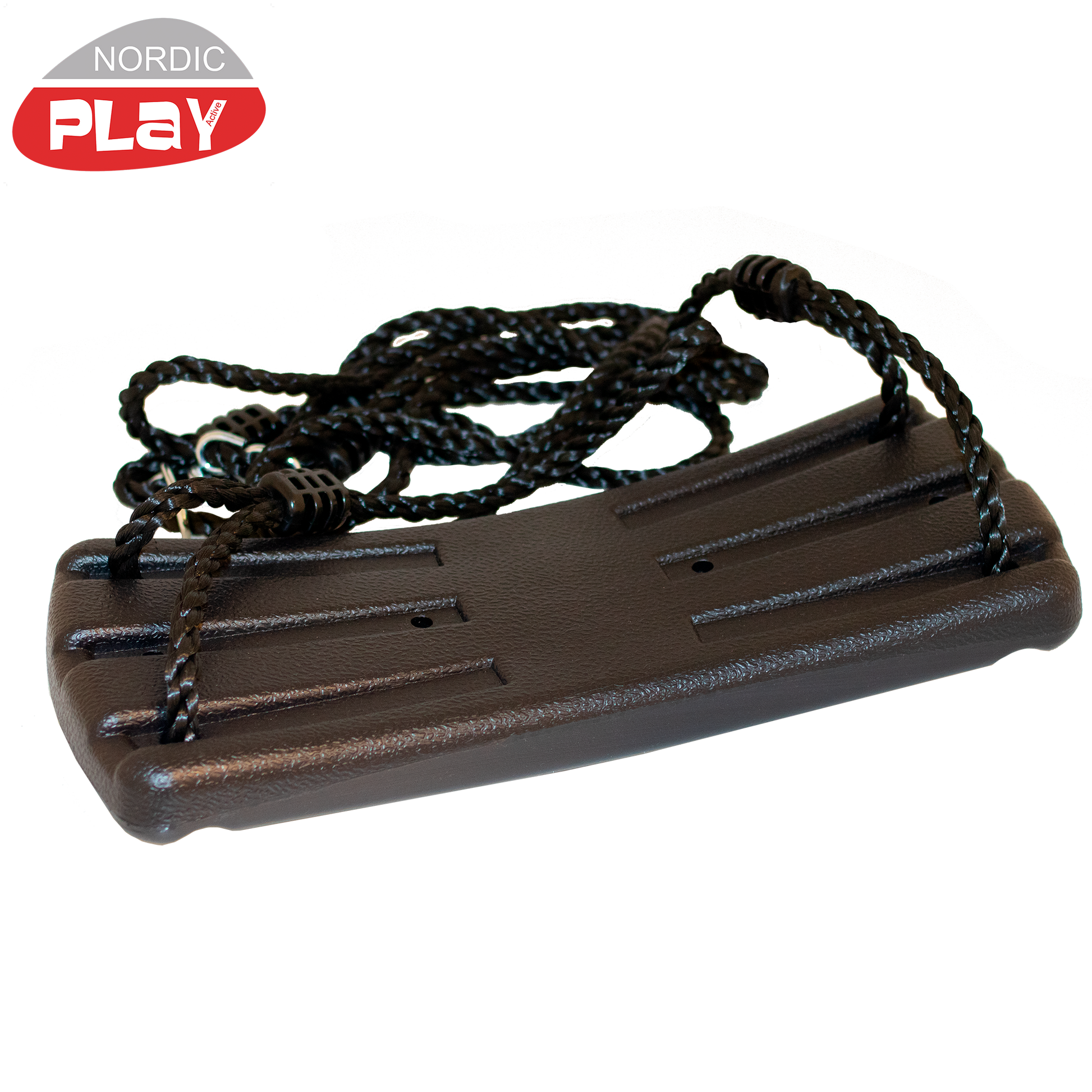 NORDIC PLAY keinuistuin on valmistettu mustasta muovista ja varustettu mustalla, säädettävällä köydellä. Köysissä on galvanoidut renkaat ripustamista varten. Toimitukseen ei sisälly ripustuskoukkuja. Sopii 3-10 vuotiaille lapsille.