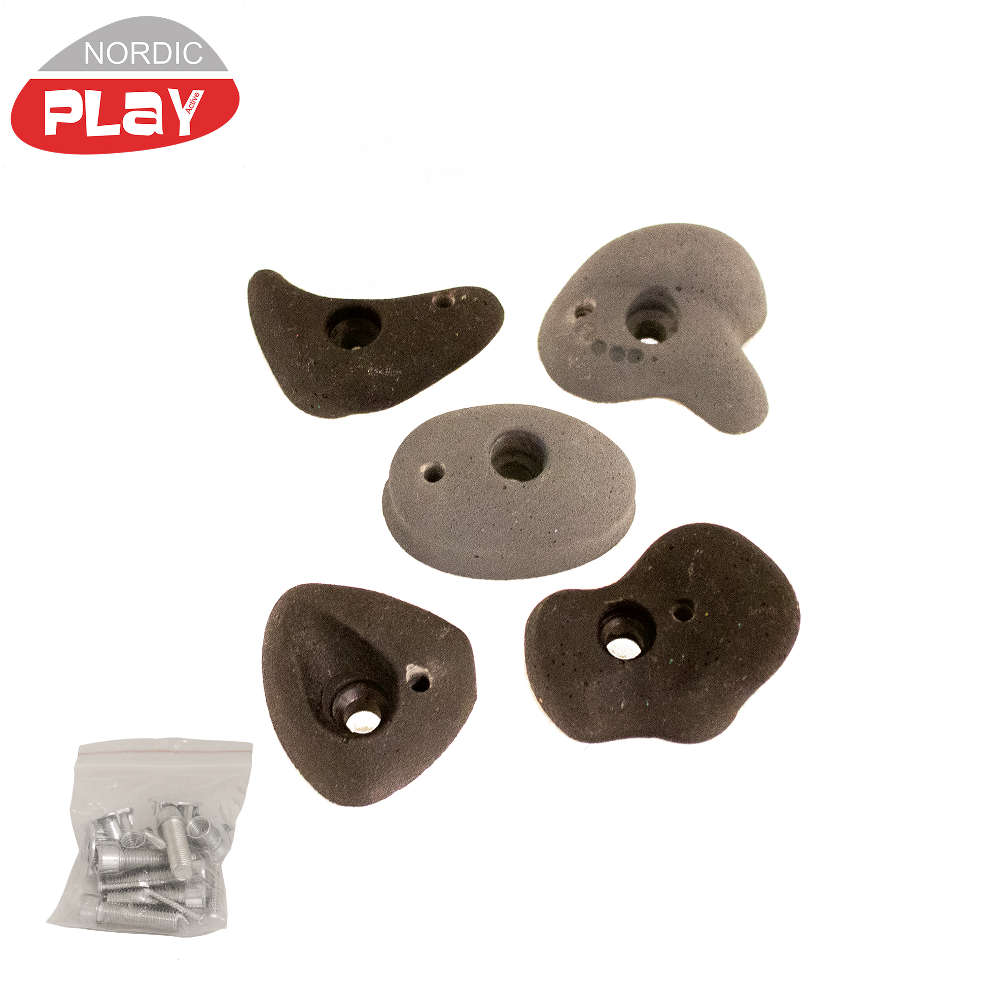 Kiipeilyotteet, musta/harmaa, 5 kpl. mukana kiinnitystarpeet NORDIC PLAY