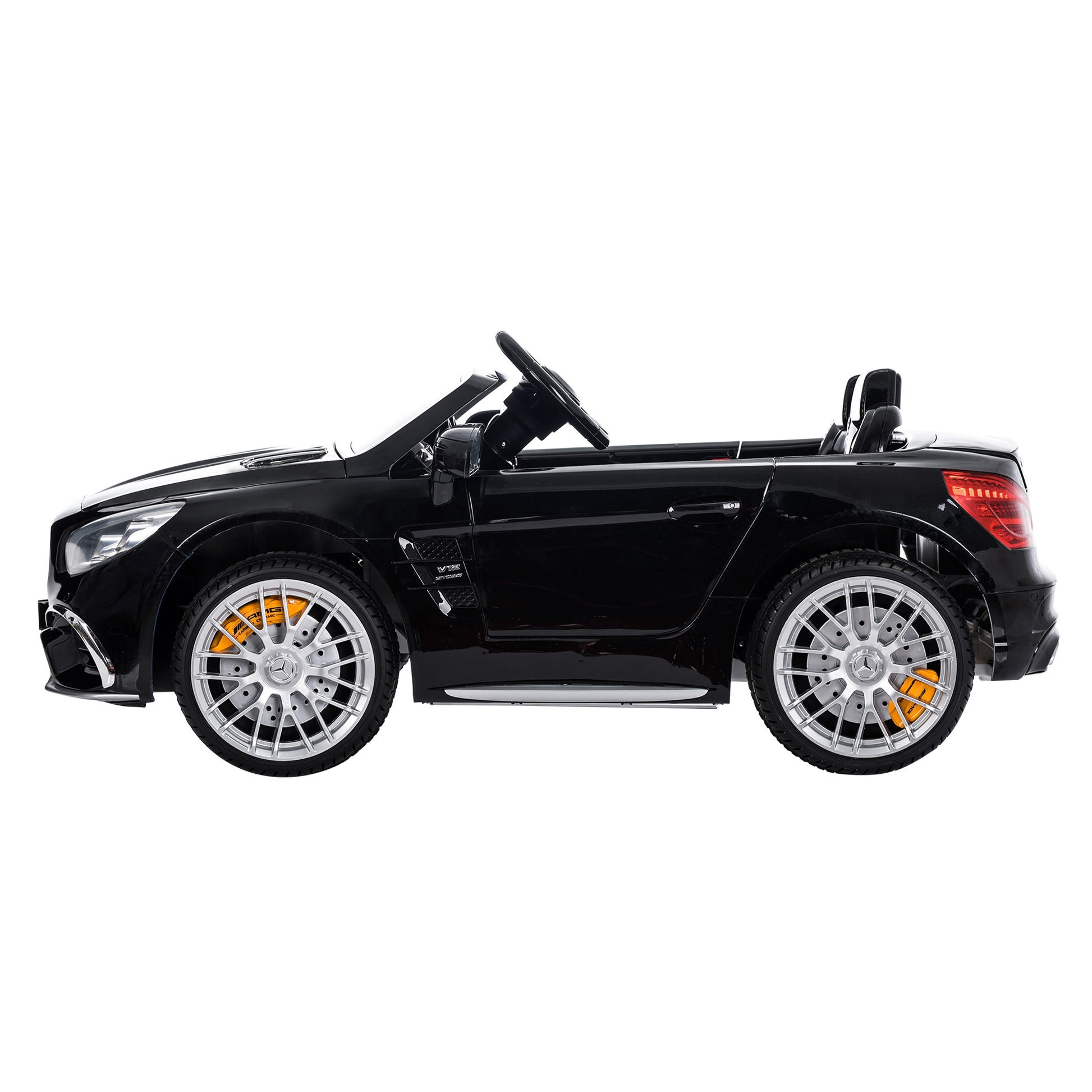Aja mukavasti tällä ylellisellä Mercedes AMG SL65 -mallilla. Ajoneuvo on varustettu kahdella tehokkaalla moottorilla ja sillä voi ajaa jopa 5 km/h. Tehokas 12V akku kestää pitkään ja tarjoaa suuremman nopeuden, joten voit ajella pidempään ja samalla kuunnella sinulle valmiiksi asennettua musiikkia tai kuunnella omia suosikkikappaleitasi ajoneuvon MP3 -soittimen kautta. Ylellinen SL65 AMG on valmistettu Mercedes-Benzin lisenssillä ja se on täynnä hienoja yksityiskohtia ja varusteita. Voit esimerkiksi säätää istuimen lapsen iän mukaan. Autossa on LED-valot edessä ja takana sekä avattavat ovet autoon kulkua helpottamaan. Autolla on miellyttävä ajaa, koska pyörissä on iskunvaimentimet. Autoon kuuluu myös kaukosäädin, jolla vanhemmat voivat alkuun auttaa auton hallinnassa. Varusteisiin kuuluu myös LCD-jännitemittari, jotta käyttäjä voi nähdä milloin on aika ladata ajoneuvoa.