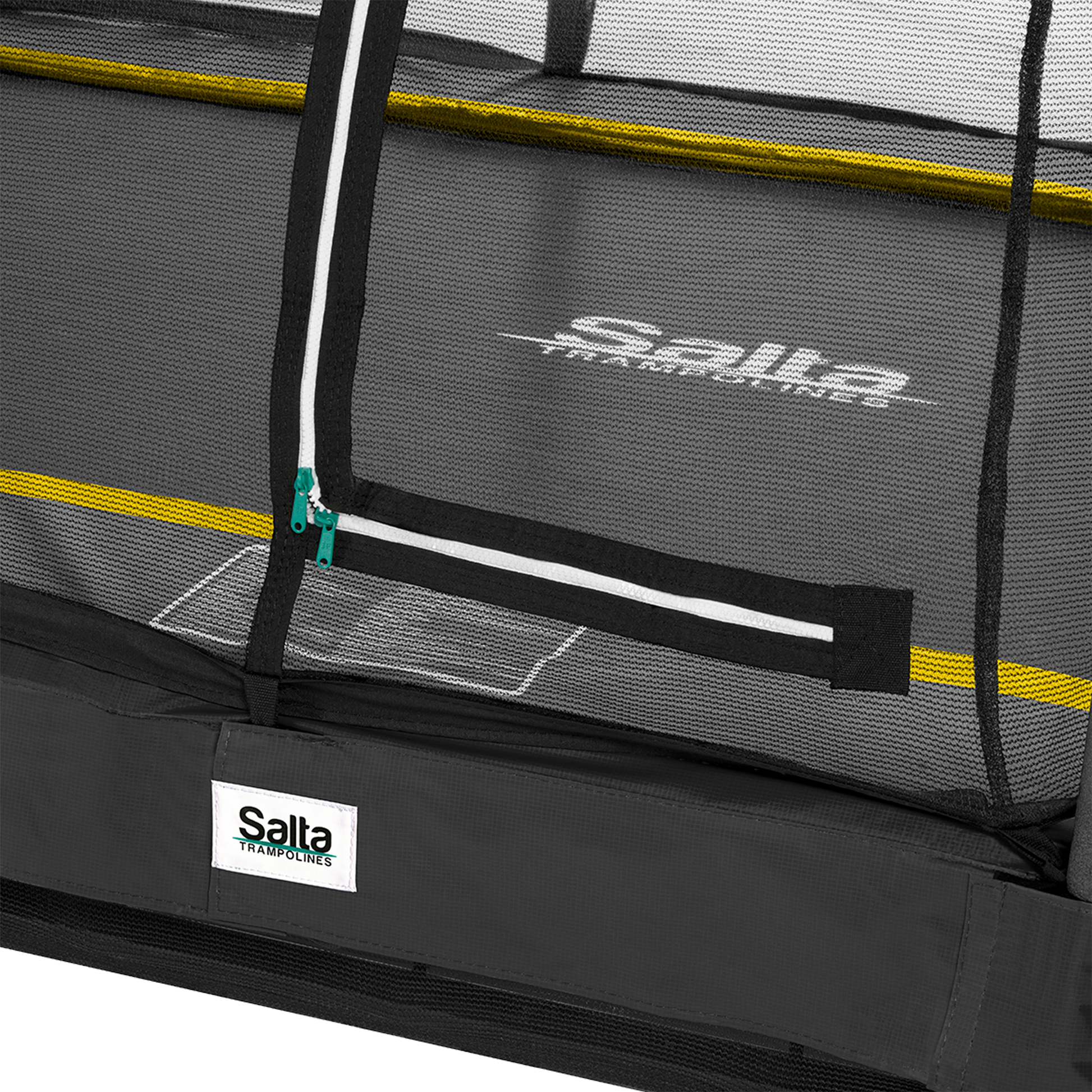 Turvaverkon metallikehän erityinen rakenne pitää verkon tyylikkäästi kaarevassa muodossaan, joten tiheäsilmäinen verkko on aina kireä. Trampoliinissa on 20 mm paksuinen ja 20 cm leveä reunapehmuste, joten kaksoiskartiomuotoillut ja kaksoisgalvanoidut jouset pysyvät turvallisesti täysin peitettyinä. Kaksipuolinen vetoketju tarjoaa helpon kulun trampoliiniin ja sieltä pois. SALTA Comfort Edition maatrampoliini tarjoaa erinomaisen hyppykokemuksen vuosiksi eteenpäin.