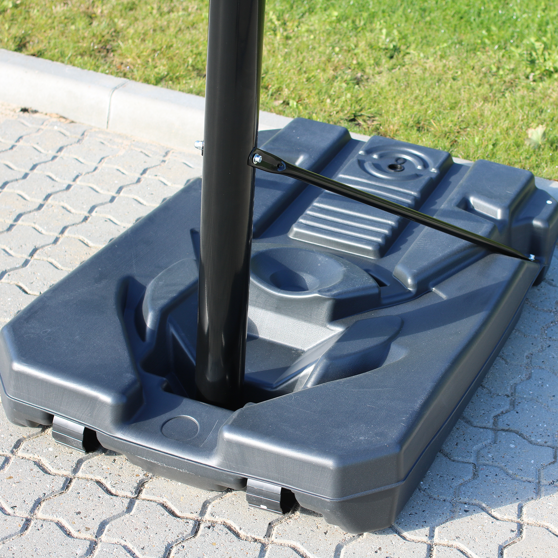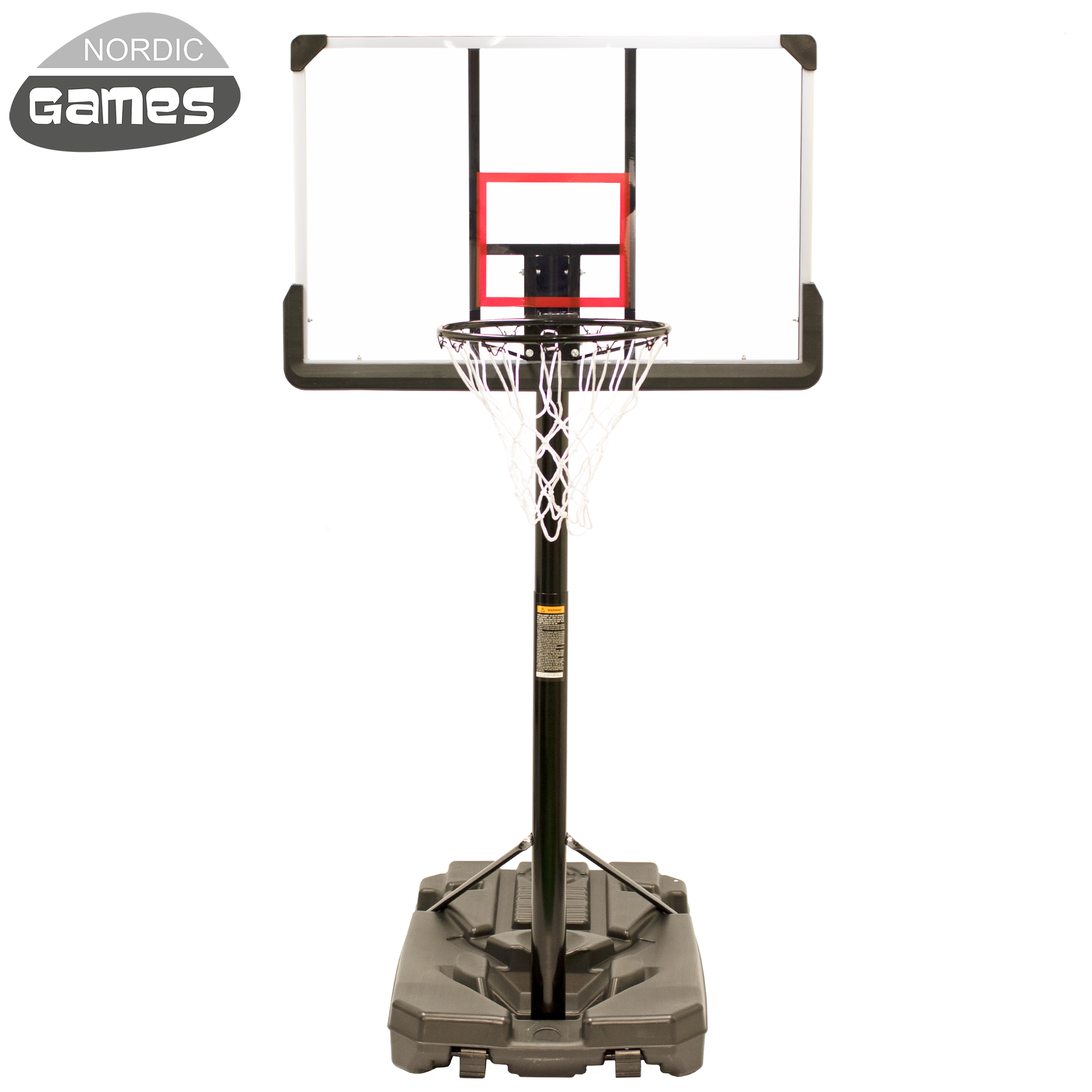 NORDIC Games Deluxe -koripalloteline on siirreltävä ja silti erittäin tukeva teline vaativimmillekin pelaajille. Kookas jalusta täytetään vedellä tai hiekalla, jolloin teline pysyy pystyssä kaikissa sääolosuhteissa. Itse telineessä on kaksi kahvaa, jolla voit helposti säätää korin korkeutta, jotta sekä perheen nuorin että vanhin voivat nauttia koripallosta. Sitä voidaan säätää 200-305 cm korkeuteen. Jalustassa on sisäänrakennetut pyörät, jotka helpottavat suuren ja raskaan koripallotelineen siirtämistä.
