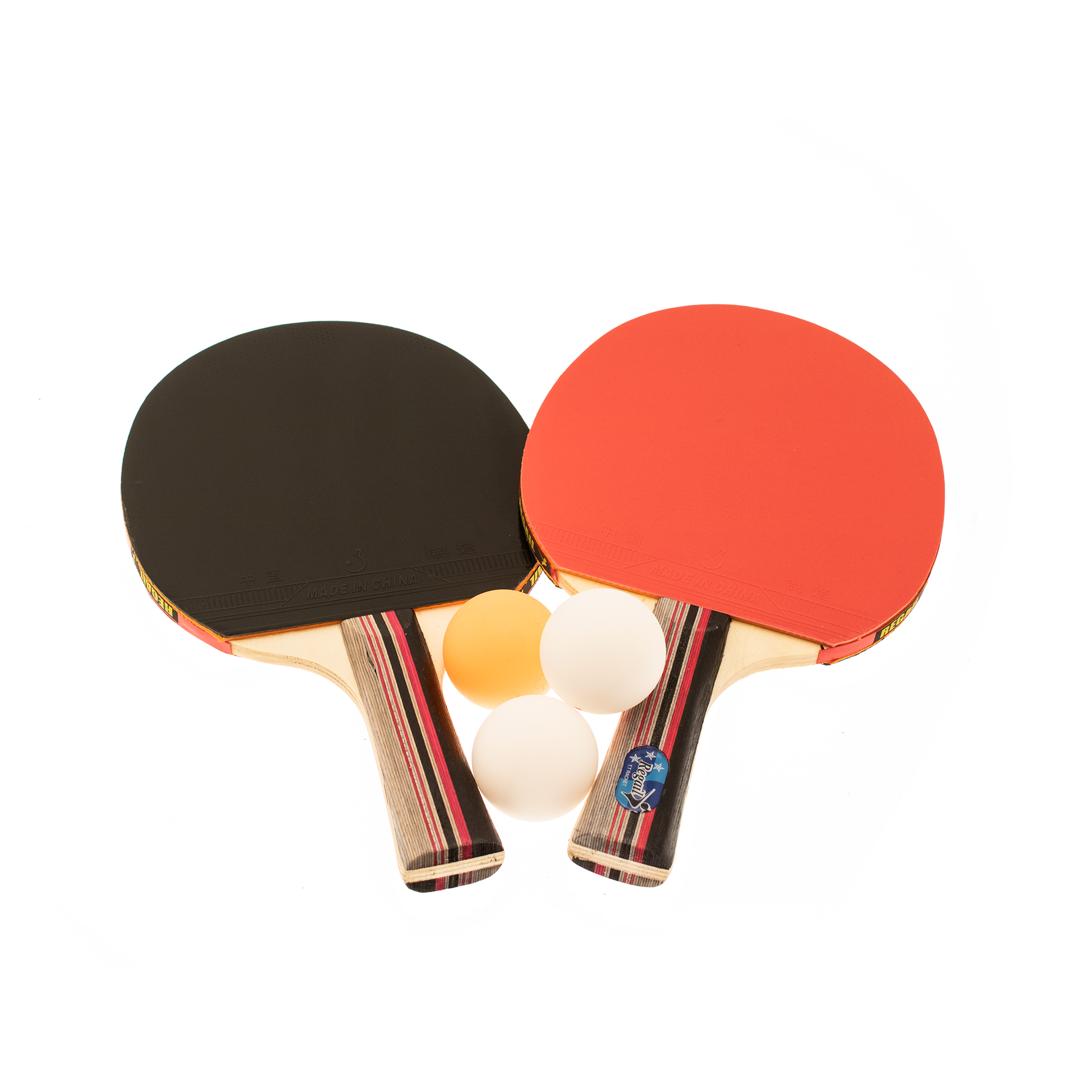 NORDIC Gamesin Basic pöytätennis setti, jossa 2 mailaa ja 3 palloa sekä käytännöllinen pieni vetoketjullinen säilytyspussi.