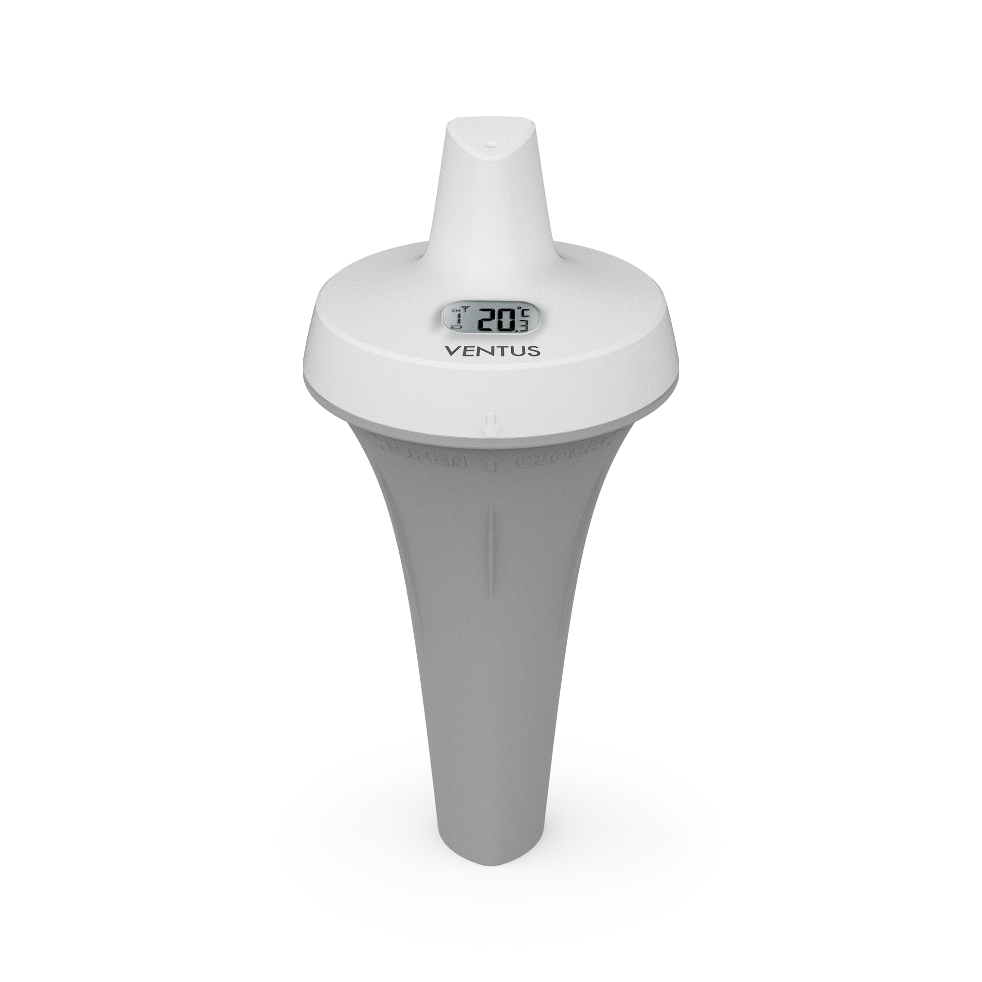 Lämpömittari on kelluva ja siinä on näyttö, josta lämpötila voidaan lukea C / F.